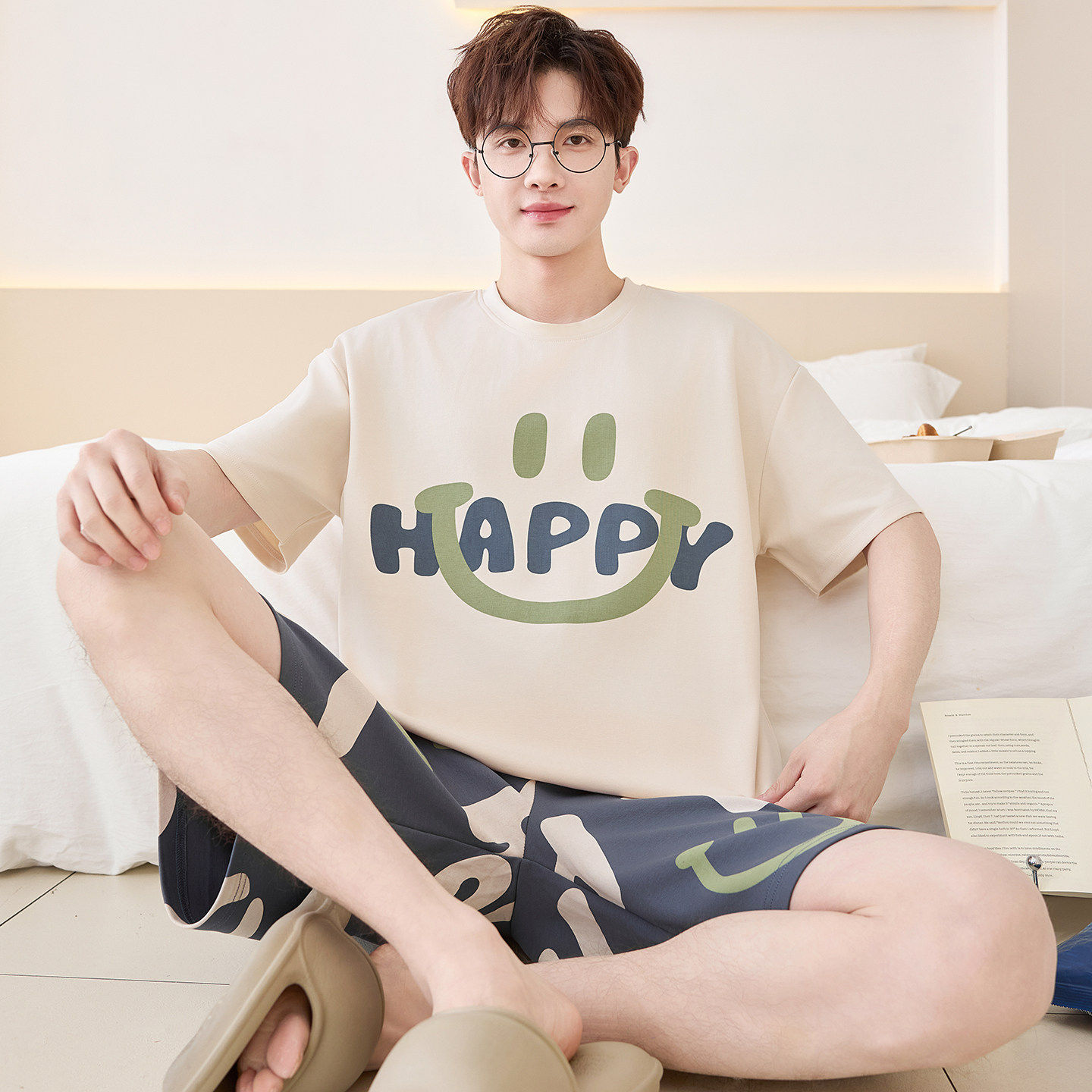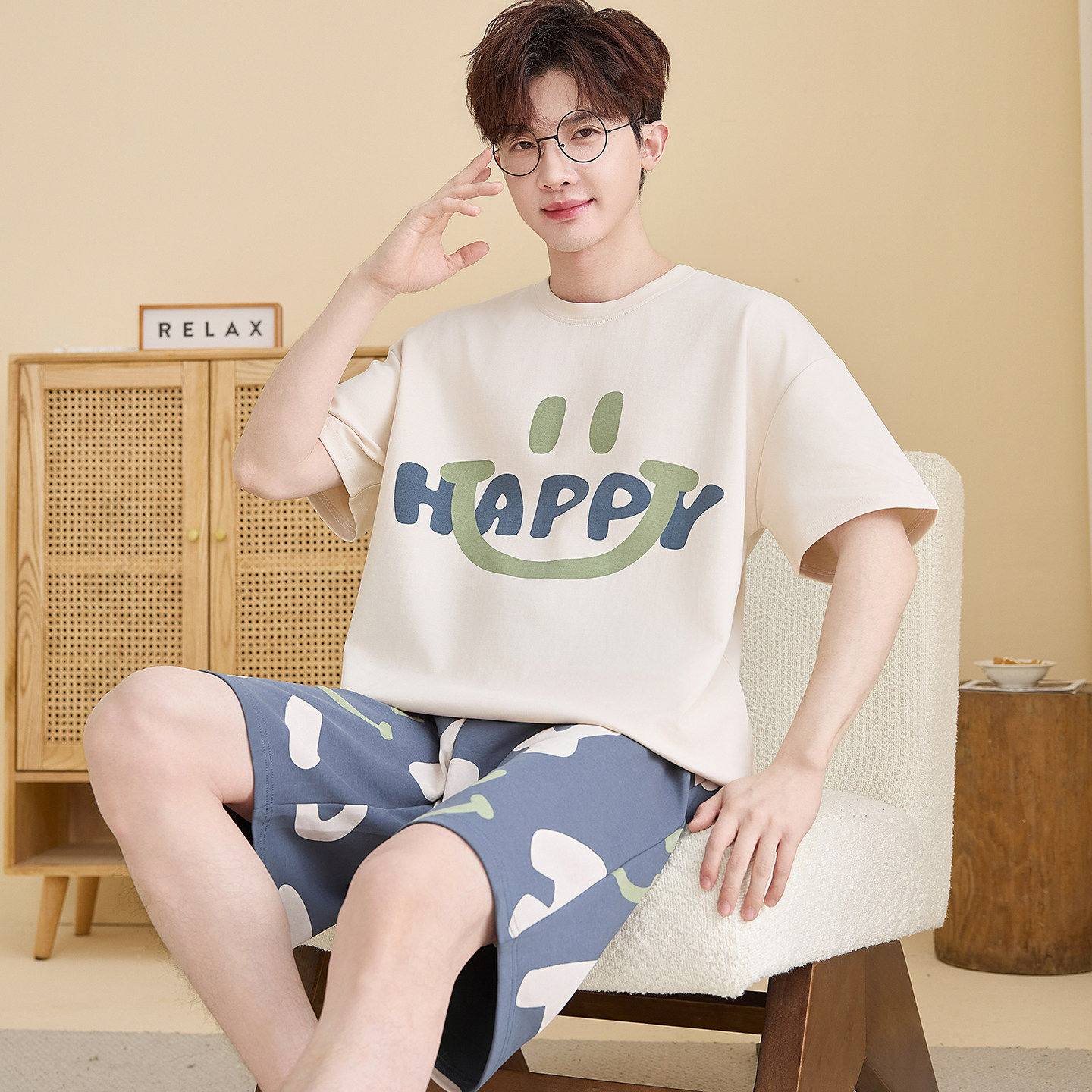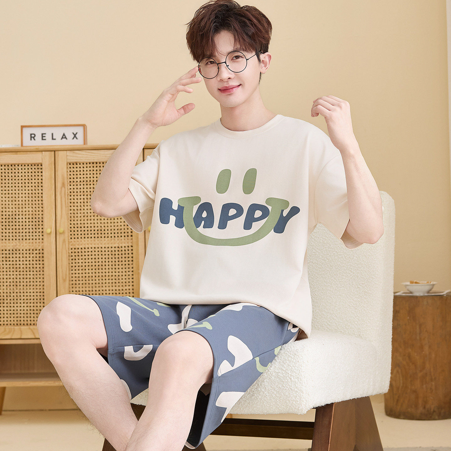 芬腾睡衣男款2026新款夏季纯棉短袖薄款加大码青少年初中学生大童