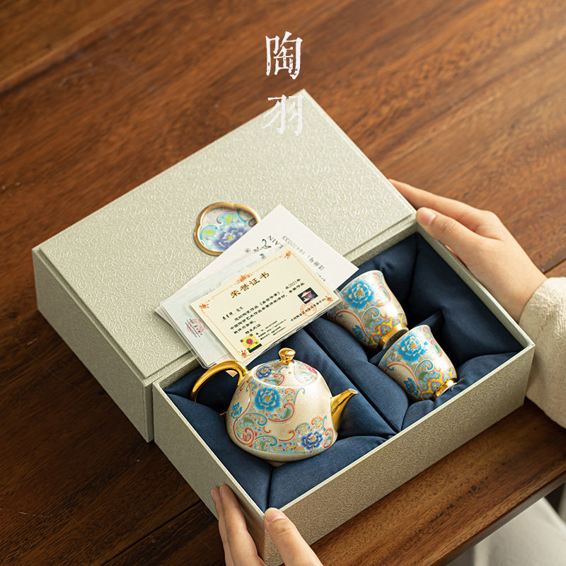 掐丝银一壶两杯泡茶壶功夫茶具旅行便携式珐琅彩品茗杯高档礼盒装
