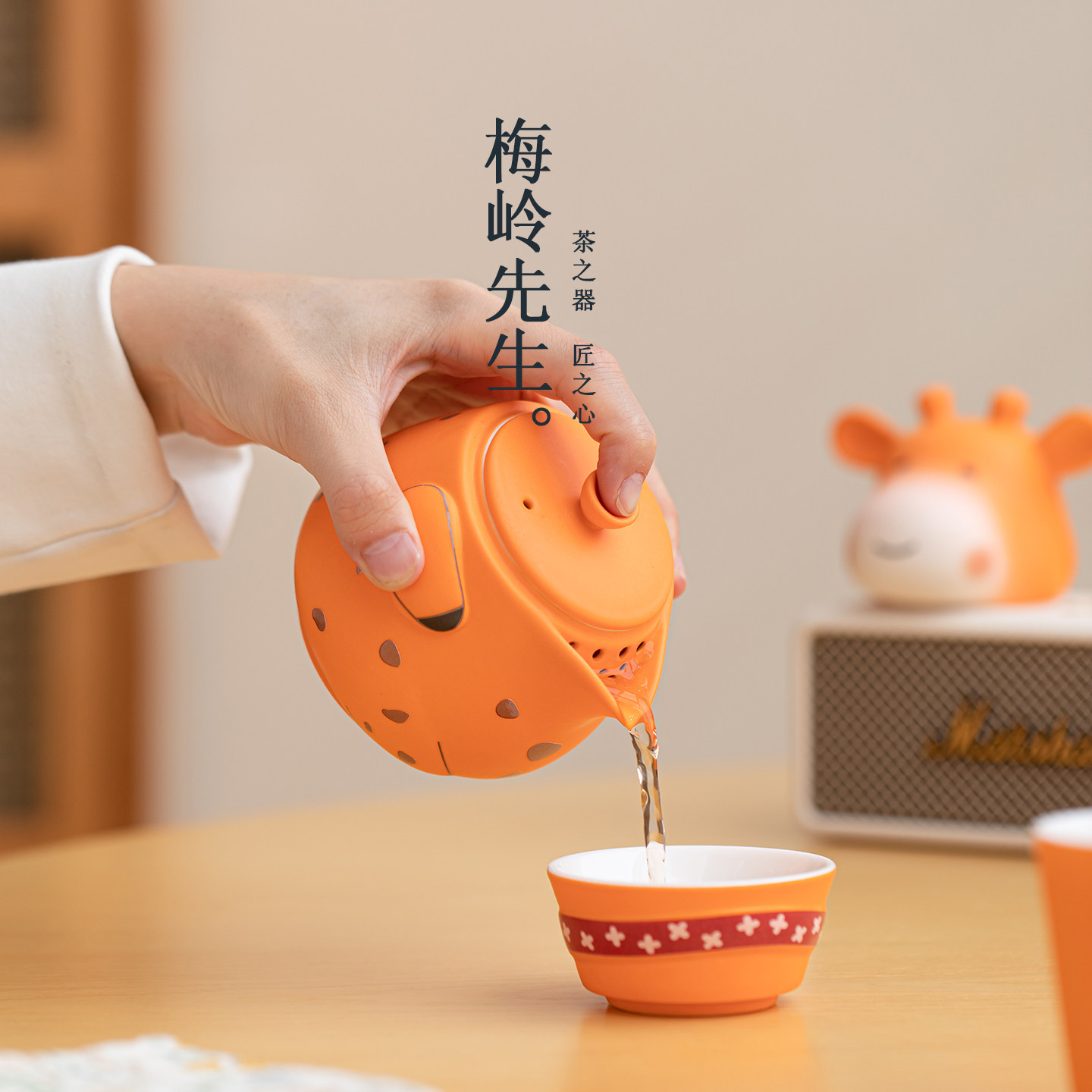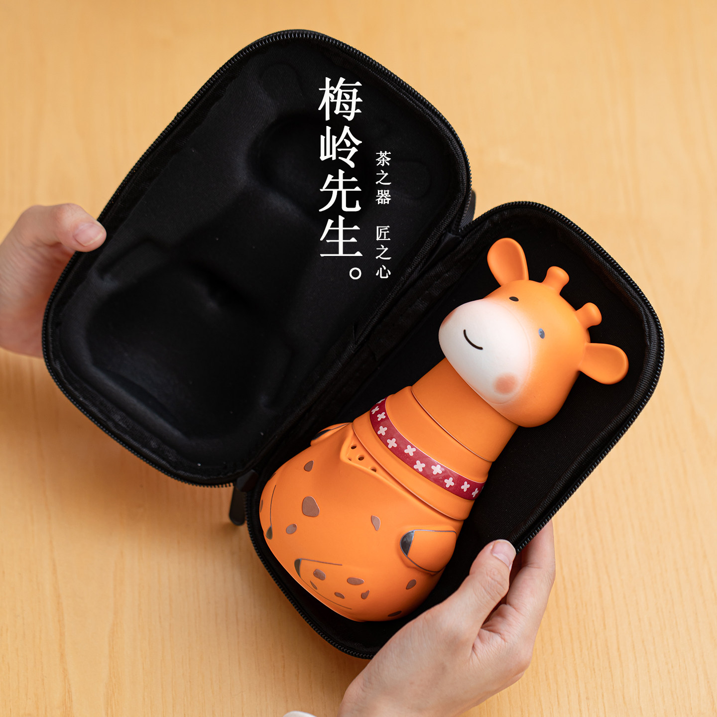 创意伴手礼长颈鹿旅行茶具套装便携式收纳包一壶两杯男女生日礼物