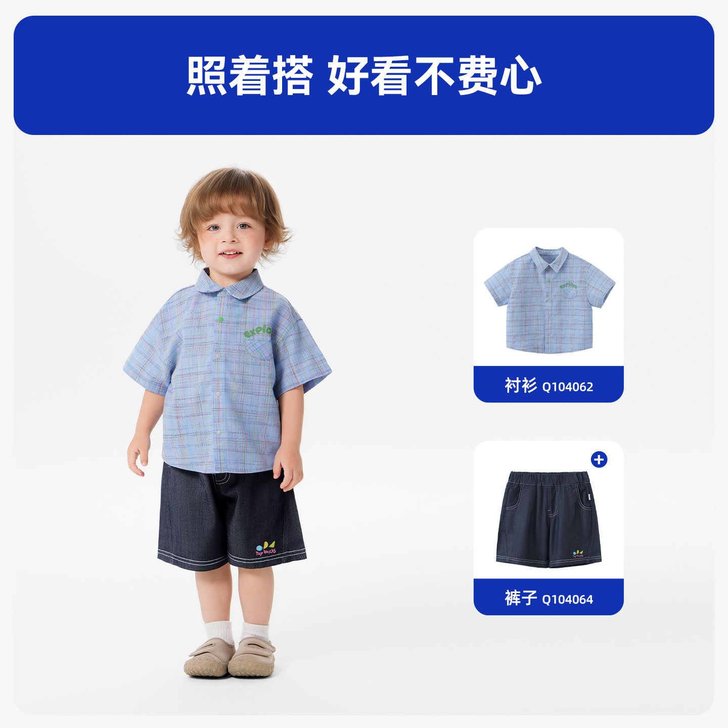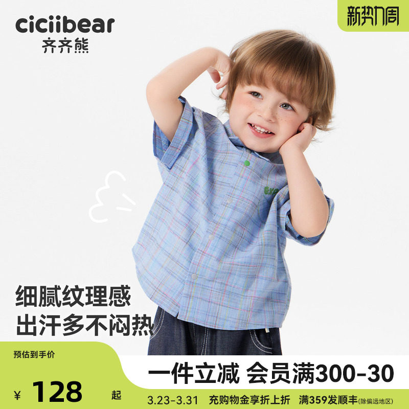 311线报网描述:齐齐熊宝宝夏款格子衬衫 日常百搭