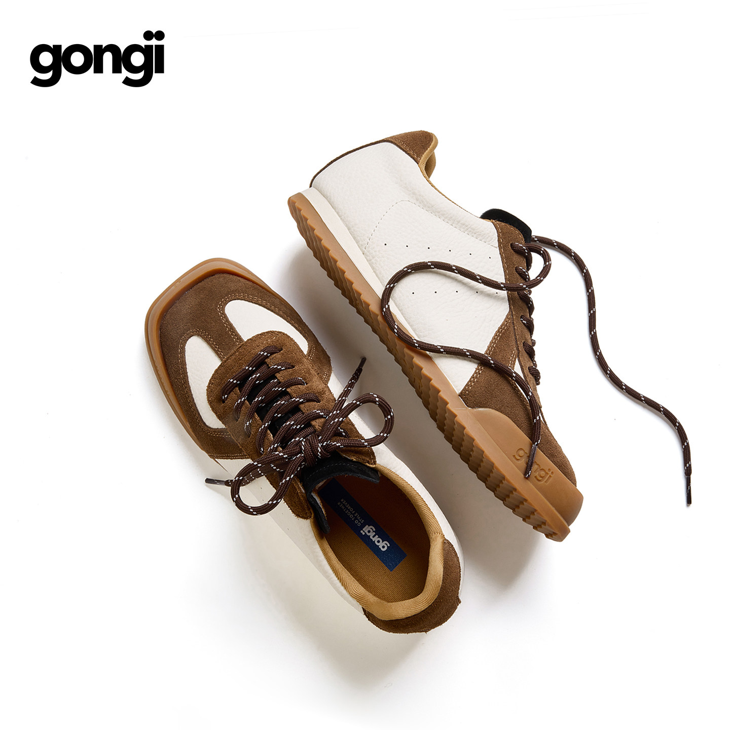 【田嘉瑞同款】GONGJI德训鞋女2026春方头内增高鞋子运动小白鞋男