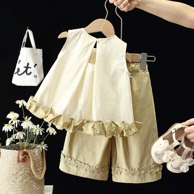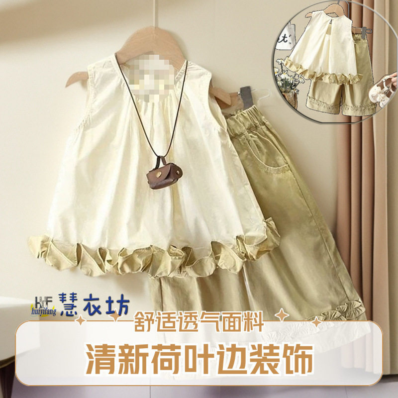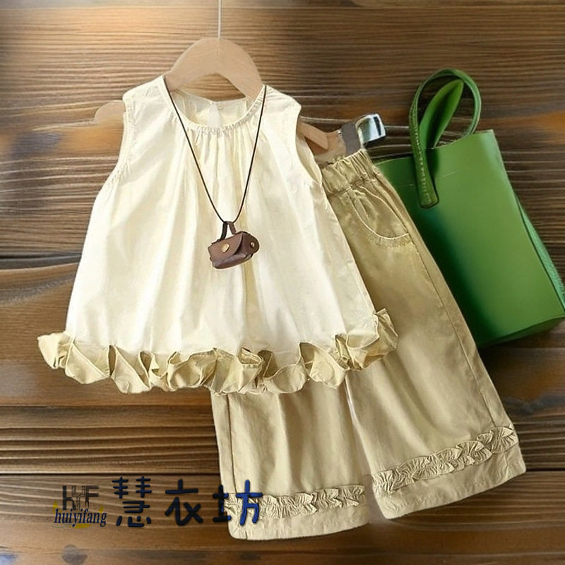 女童夏季套装洋气中小童时髦两件套2025新款韩版无袖裤子爆款夏装