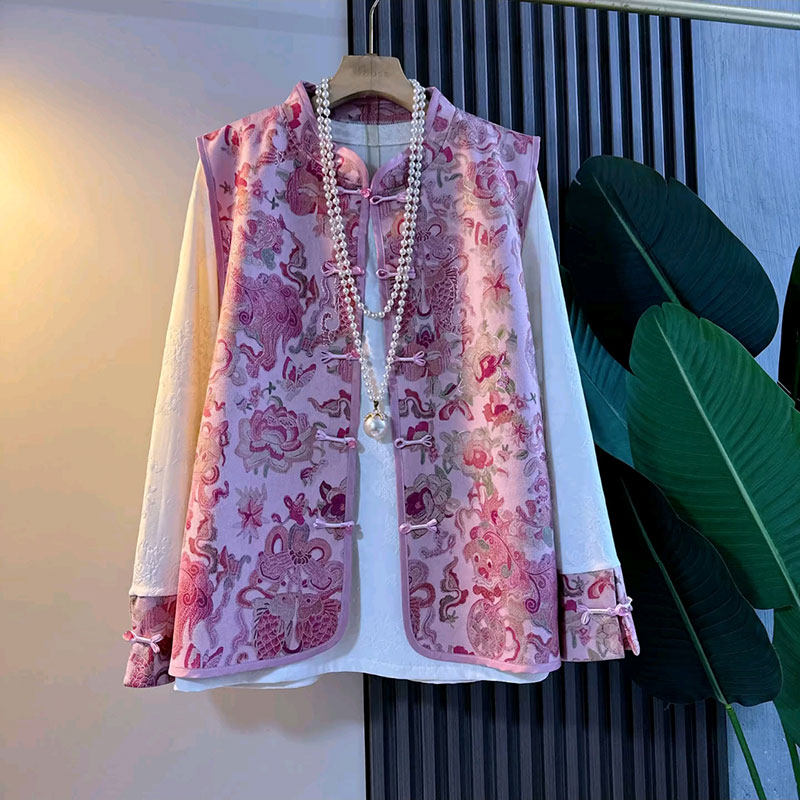 2026新款新中式国风马甲打底衫两件套大码女装胖mm气质复古套装女