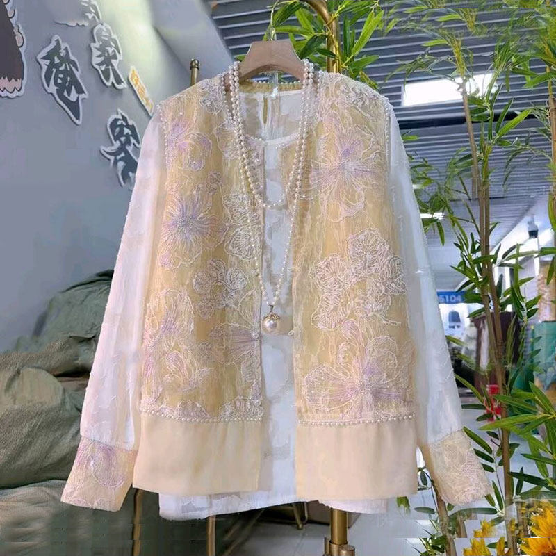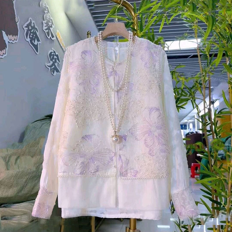 2026春季新款胖mm大码女装新中式国风刺绣复古马甲打底衫两件套女