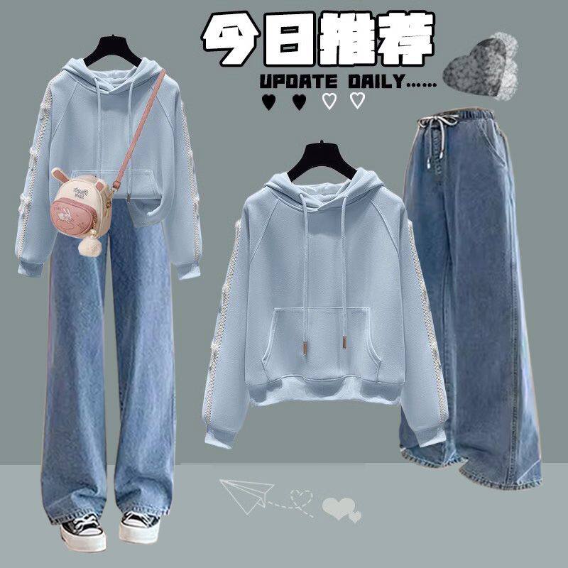 女童春装卫衣套装2026新款12岁13中大童15学生洋气时髦显瘦牛仔裤