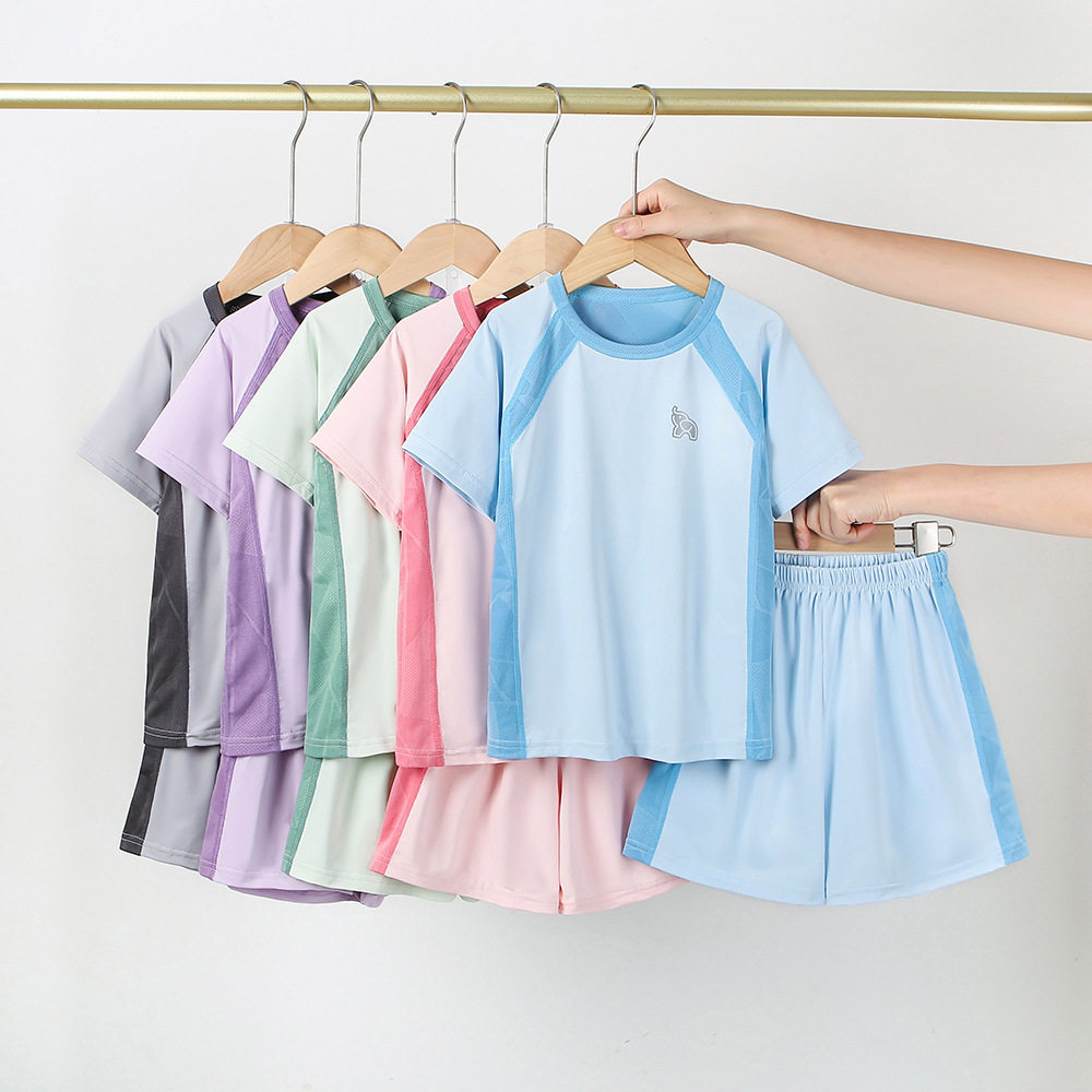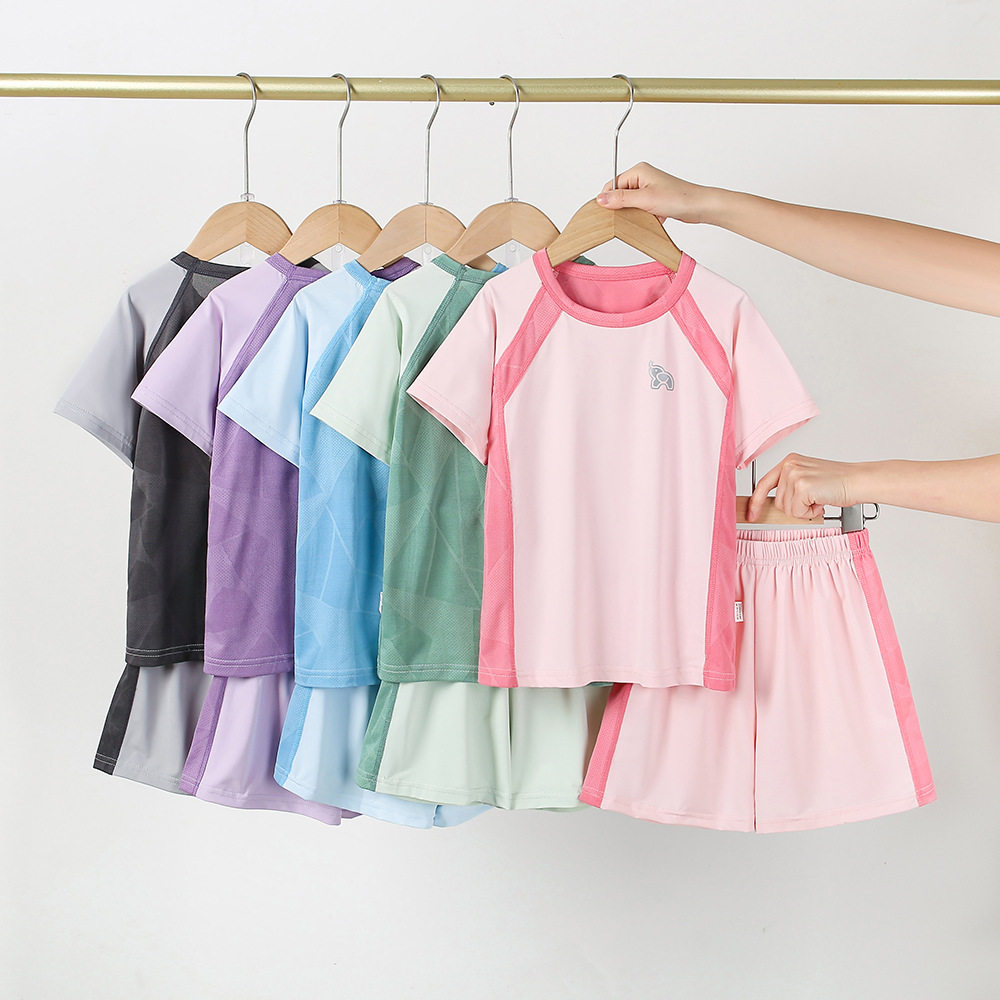 儿童短袖套装男童运动速干衣中大童学生羽毛球服女童休闲跑步服装
