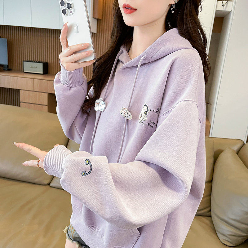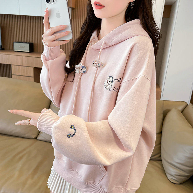 连帽卫衣女2025新款秋冬韩版宽松大码加绒加厚初中生百搭刺绣外套
