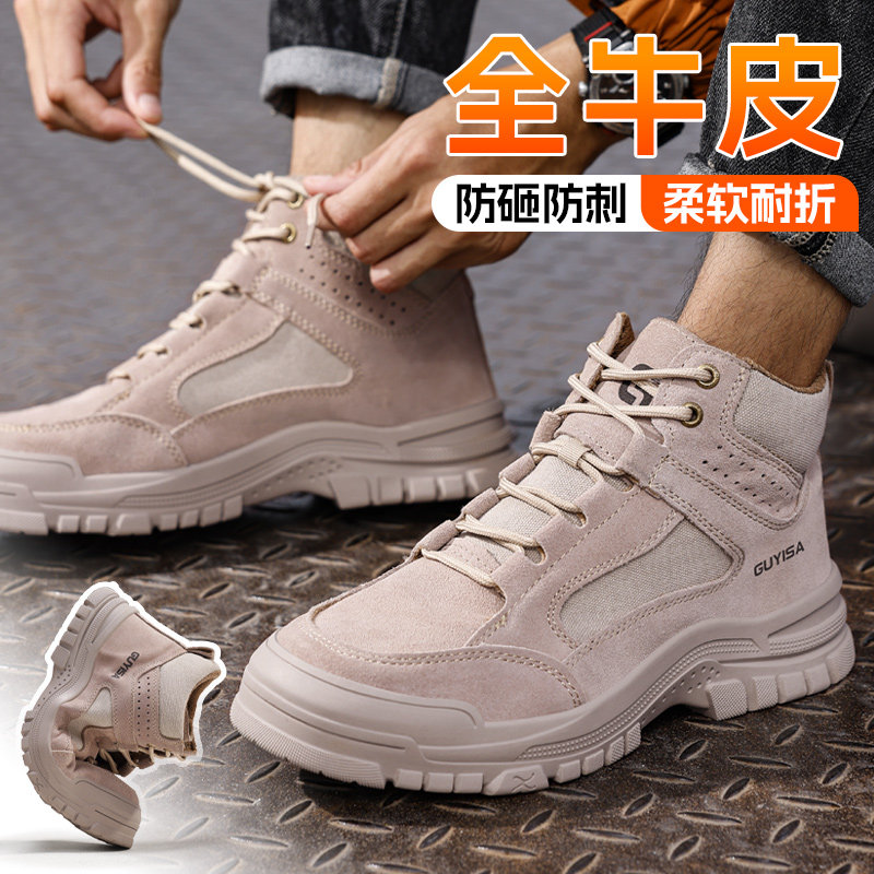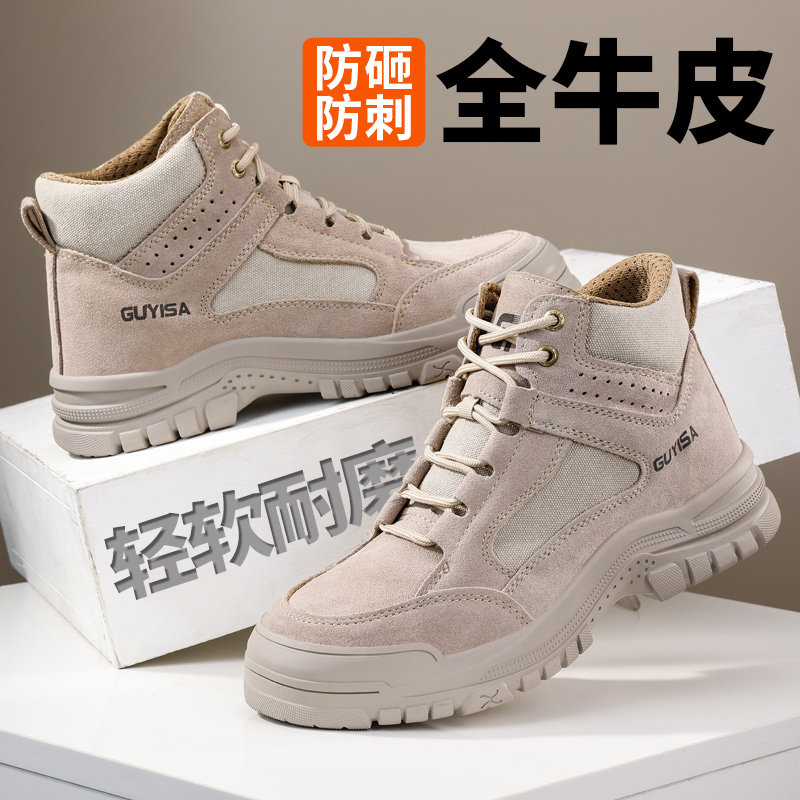 古伊萨劳保鞋男款士夏季透气高帮防砸防刺穿钢头带钢板轻便工作鞋