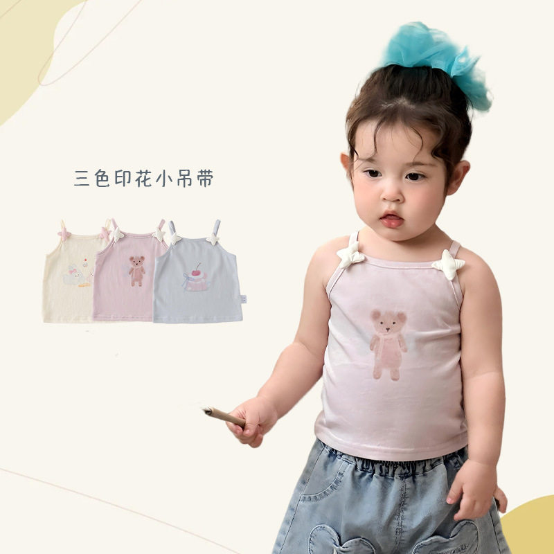 女童韩夏装套装版女宝宝无袖吊带新款婴幼儿卡通背心薄款上衣短裙