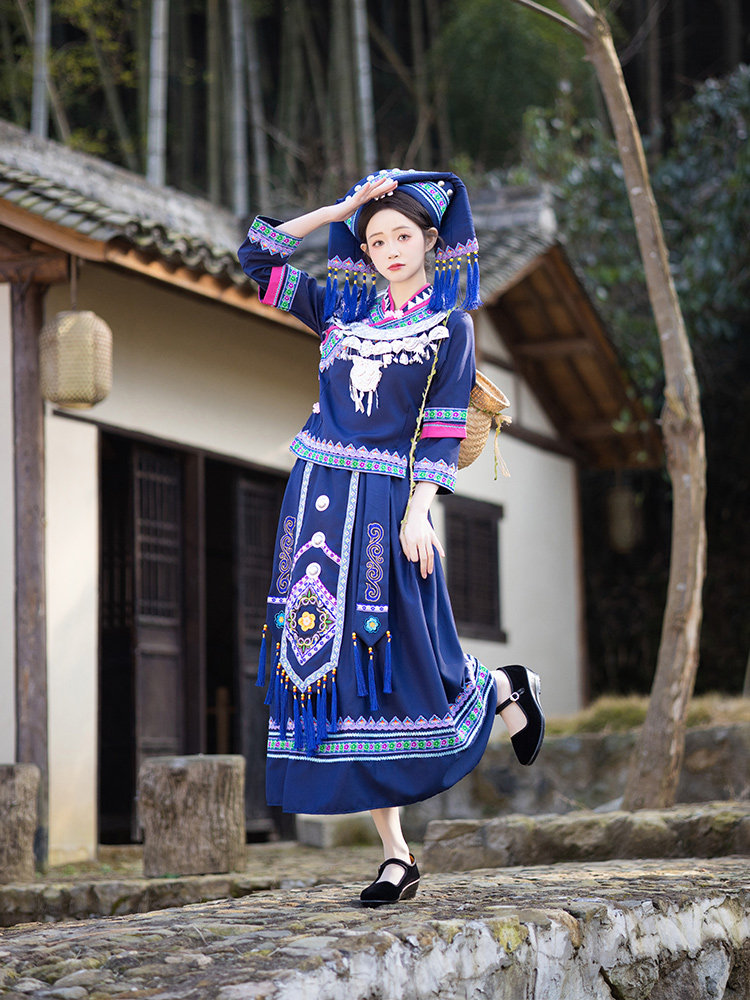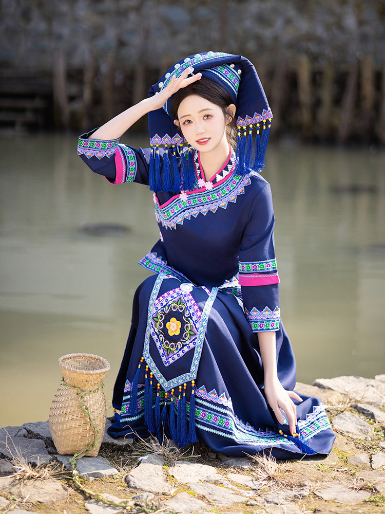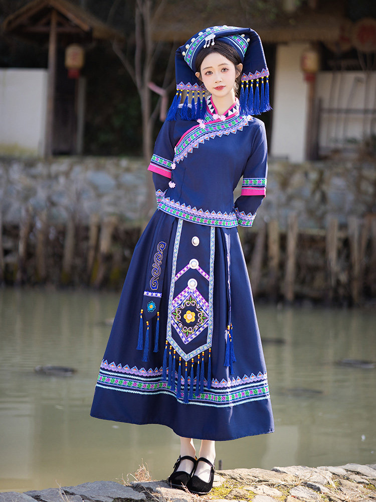 广西壮族三月三民族服装女少数民族壮族苗族彝族舞蹈演出套装成人
