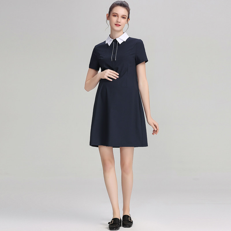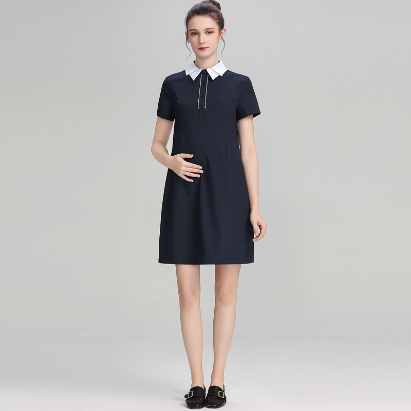 孕妇装2023夏季新款孕妇连衣裙女职业面试正装中长款孕期短袖裙子