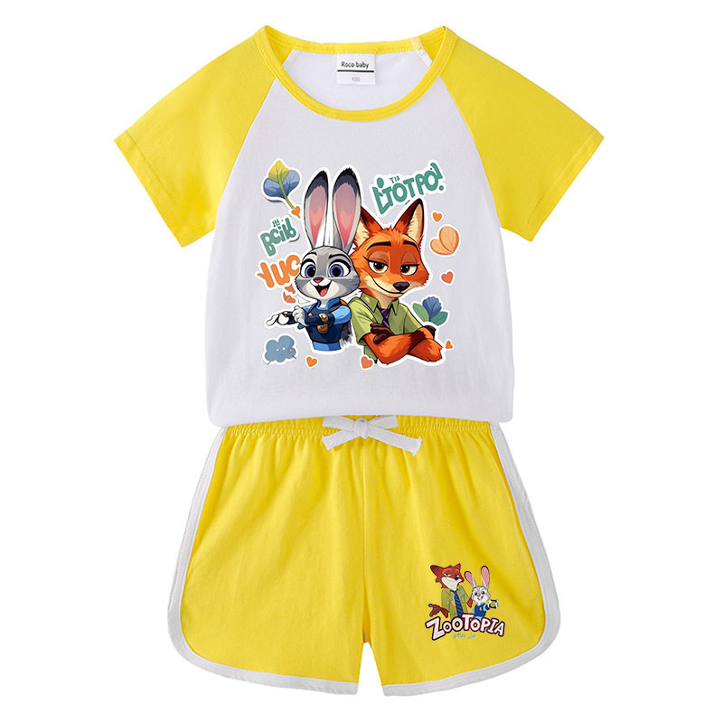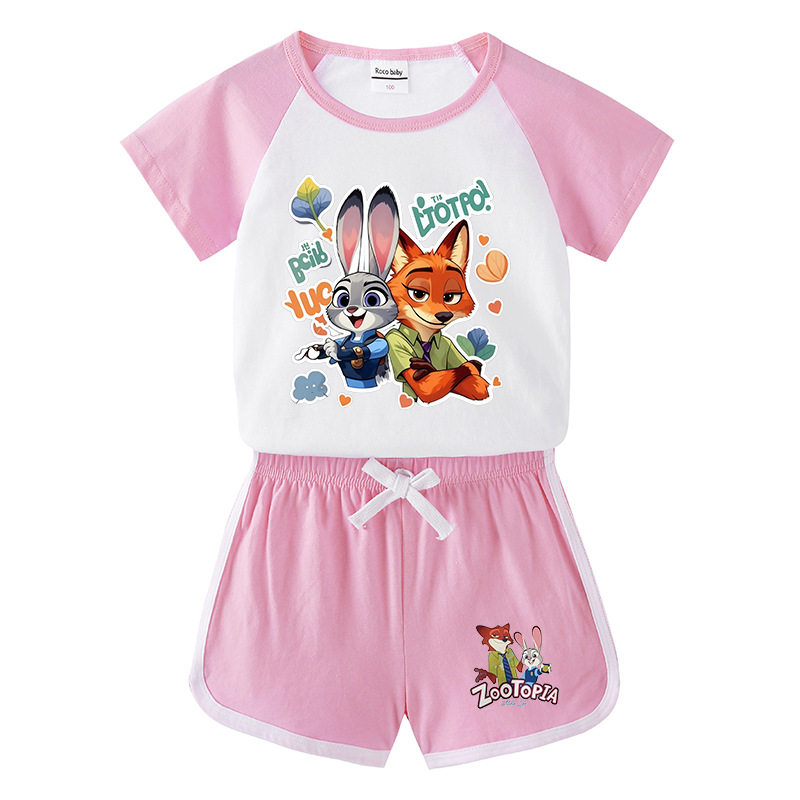 疯狂动物城衣服男女童短袖T恤套装夏季薄款纯棉儿童卡通兔子朱迪