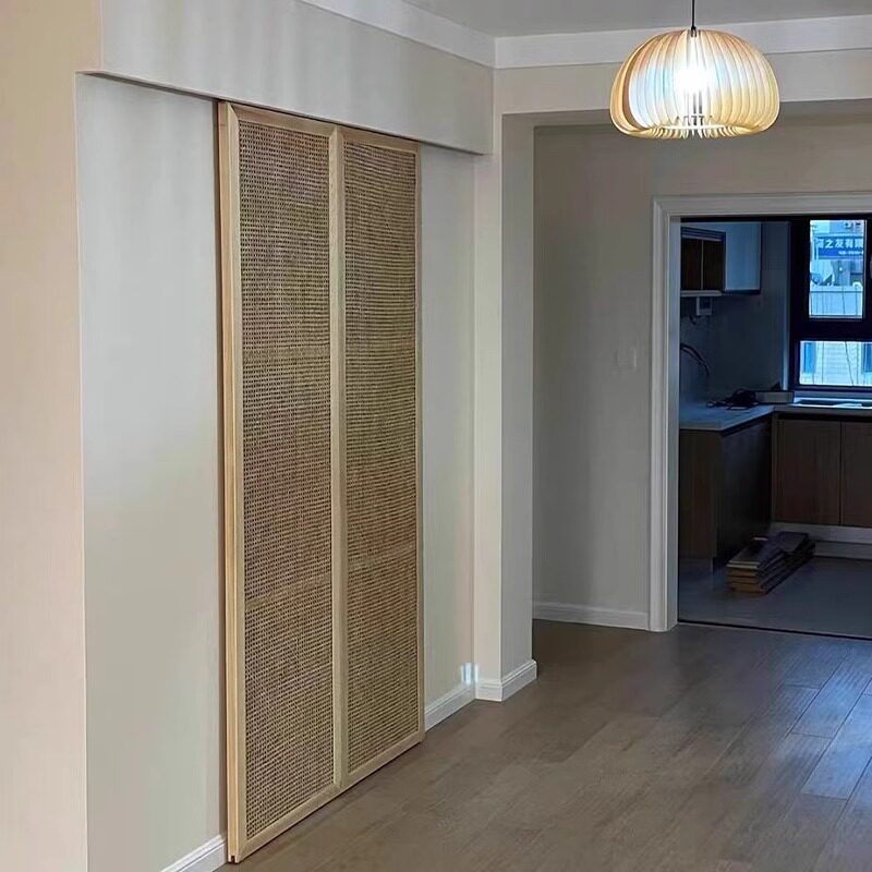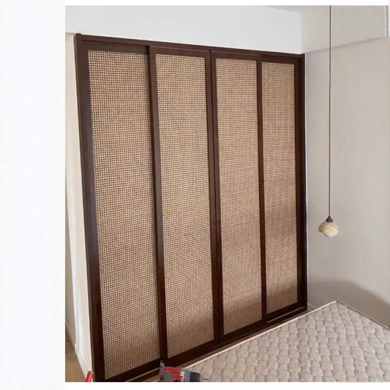 藤编门衣柜门衣帽间门定制复古透气房间门储物柜柜门鞋柜门推拉门