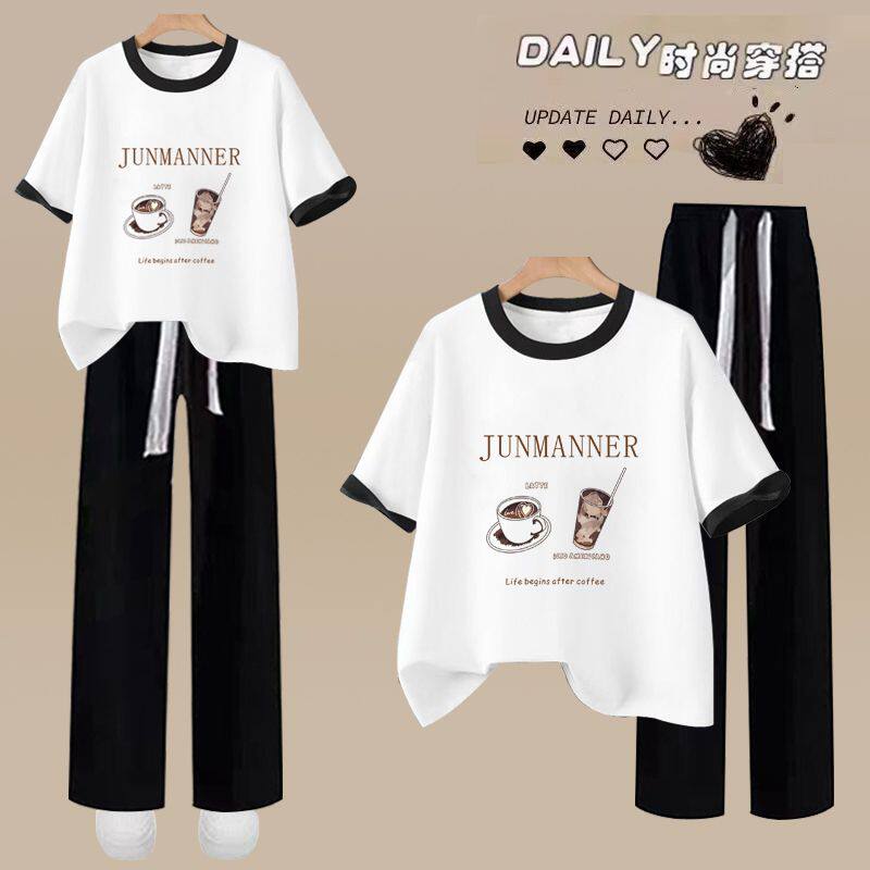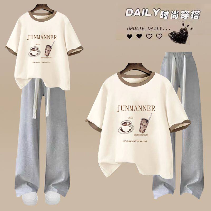 2026超火冬装三件套服少女夏装初中高中学生宽松休闲短袖两件套