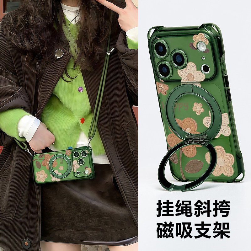 适用苹果17promax手机壳斜挎带挂绳iPhone16pro新款磁吸15plus支架保护套14可背脖子13全包防摔女12外2026