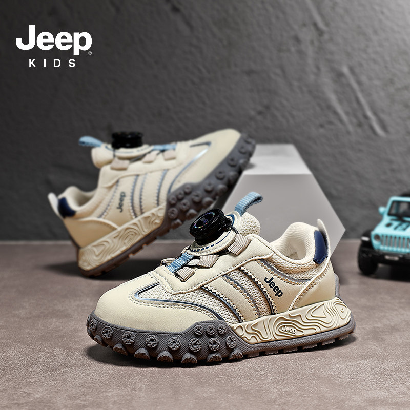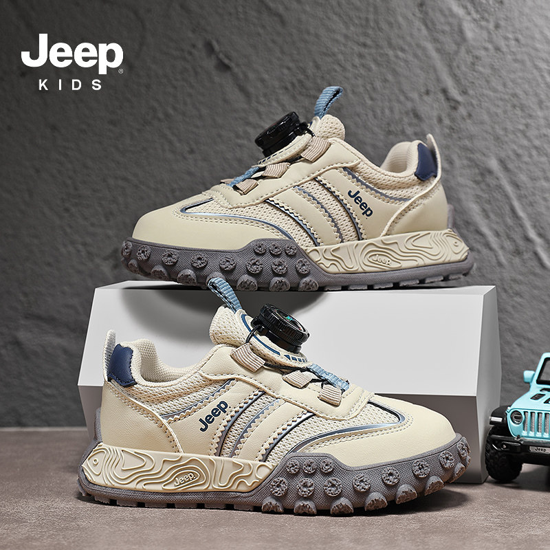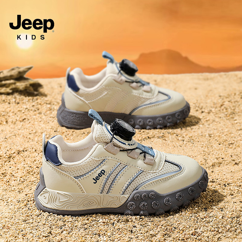 Jeep儿童鞋男童运动鞋2025新款网面透气中大童轻便软底男孩德训鞋