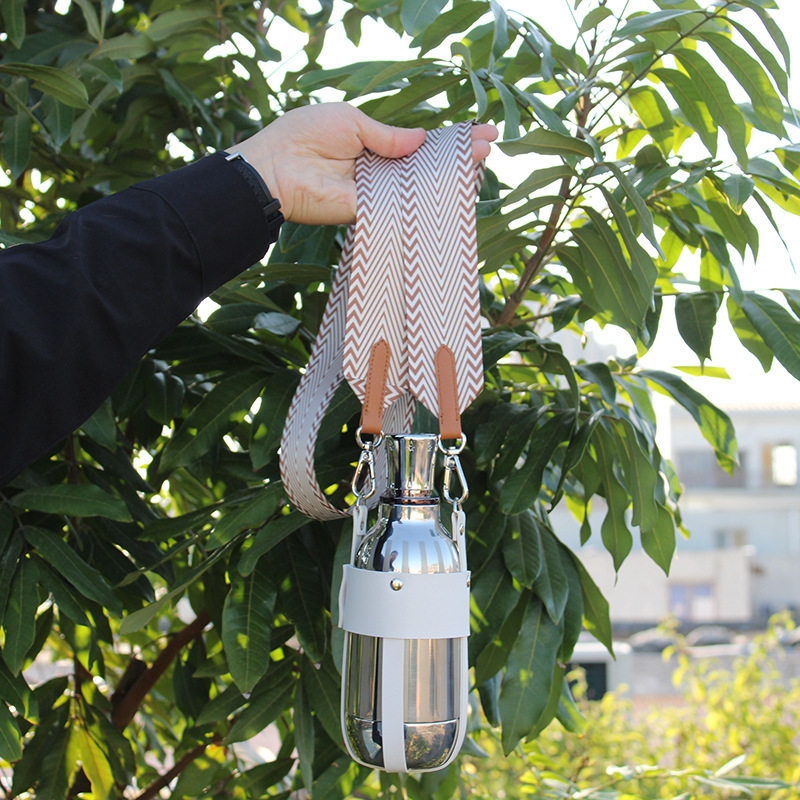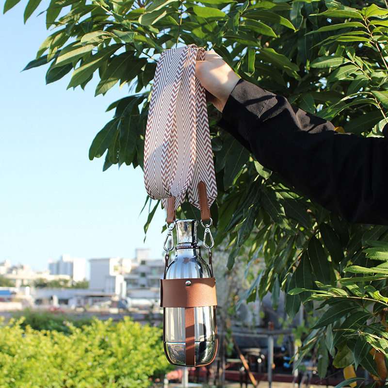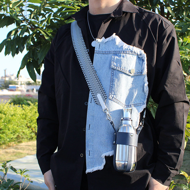 斜挎式保温杯套背带时尚PU皮革户外通用便携水杯水壶手提保护套