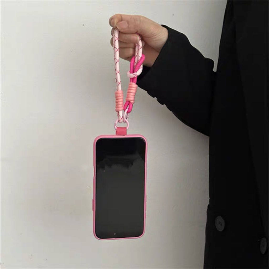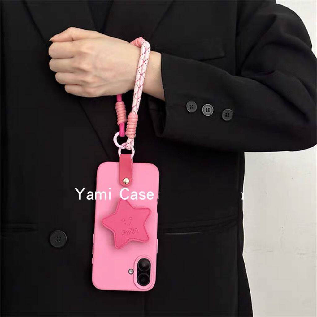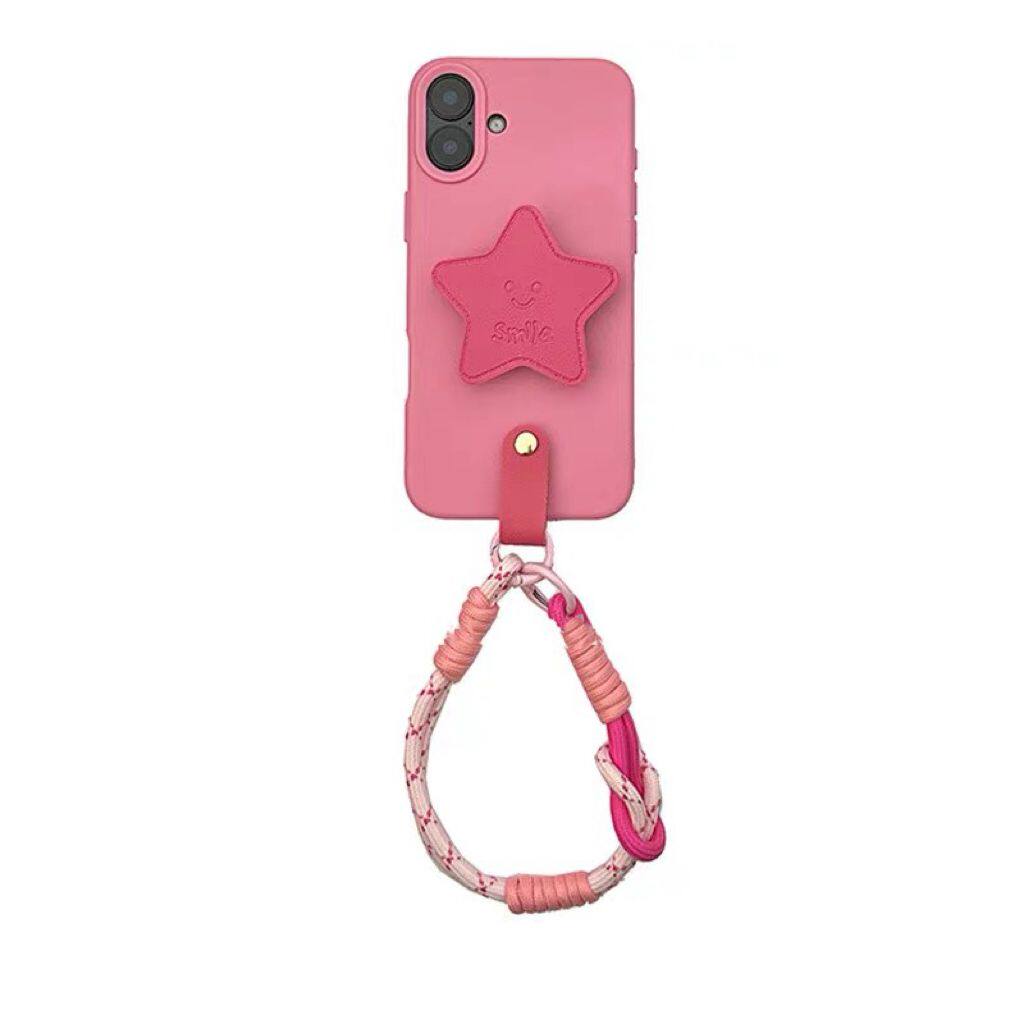 ins玫粉星星支架手提绳适用于IPhone16promax手机壳苹果15腕带13/14软11