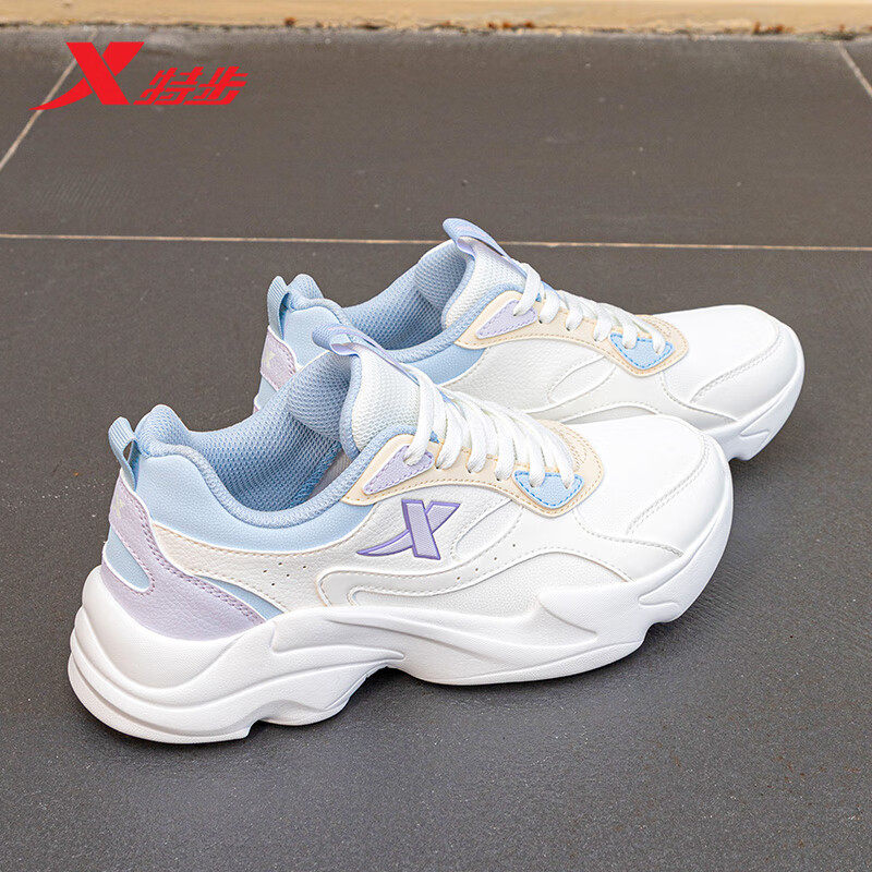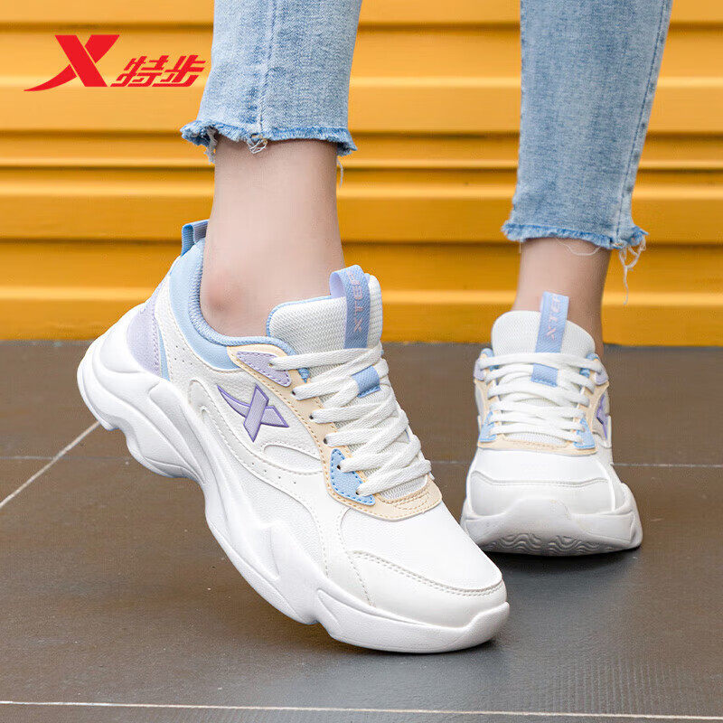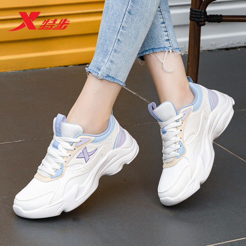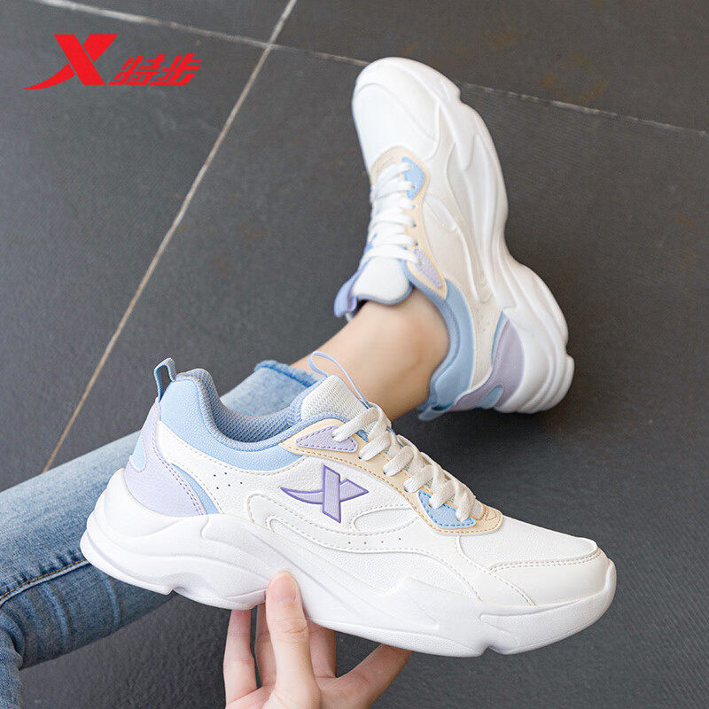 特步运动鞋女初中生跑步鞋新款皮面休闲鞋官方旗舰正品女鞋老爹鞋