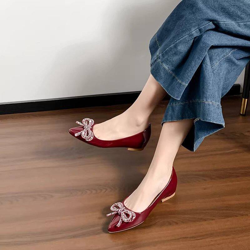 法式银色平底鞋蝴蝶结内增高女鞋2026新款夏季气质配裙子尖头单鞋