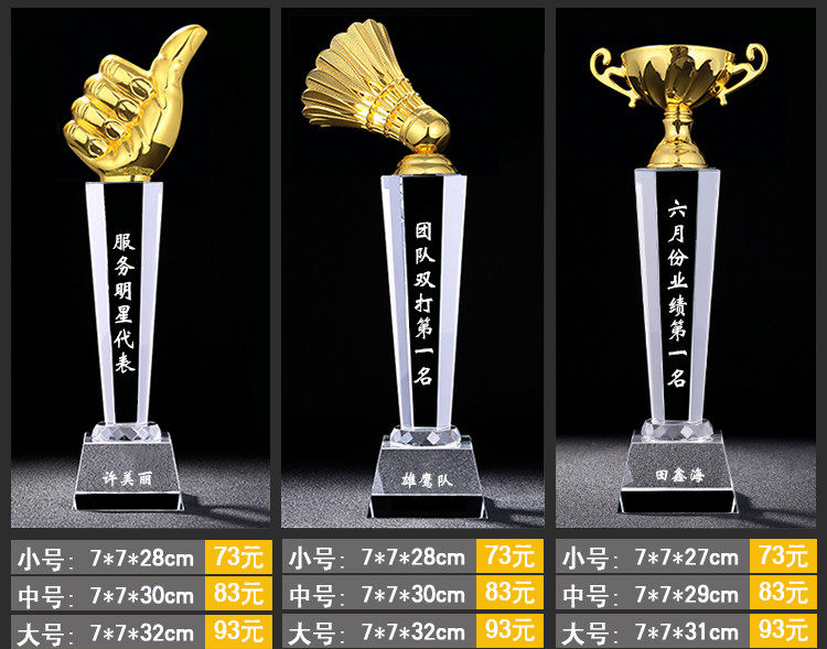 水晶奖杯定制刻字大拇指五角星树脂儿童比赛优秀员工公司授权年会