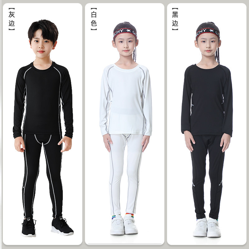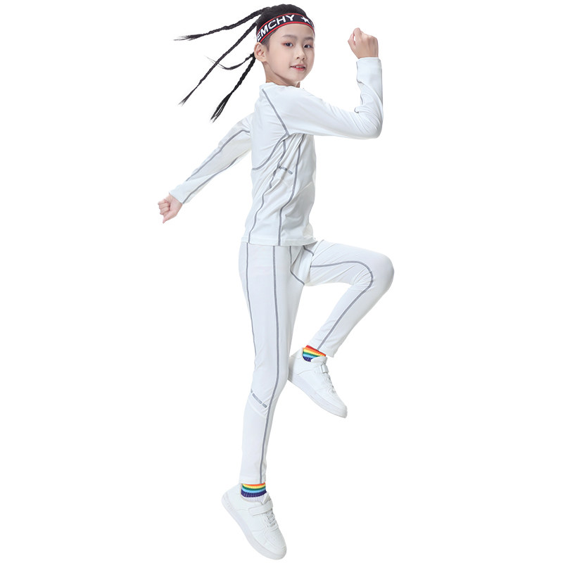 女童运动紧身衣儿童篮球打底服速干套装男童长袖舞蹈跳绳训练内搭
