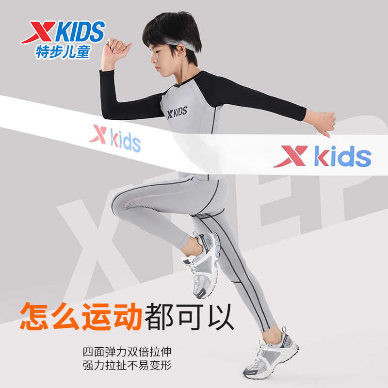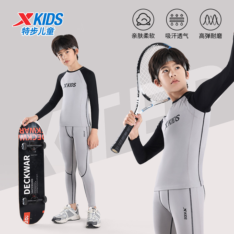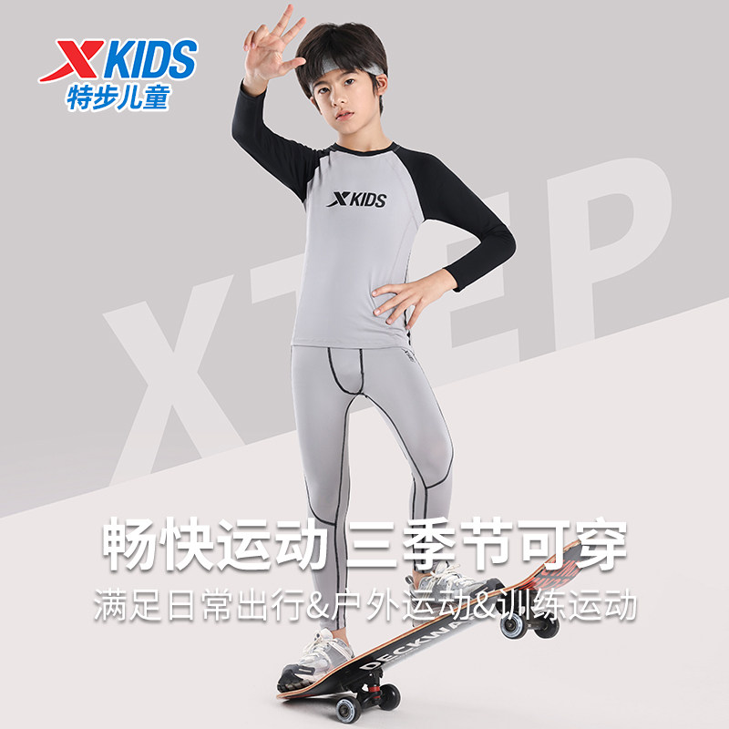 特步儿童紧身衣训练服速干衣男女童秋冬足球内搭运动健身服篮球服