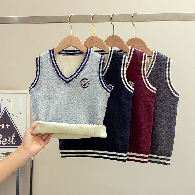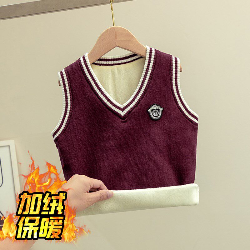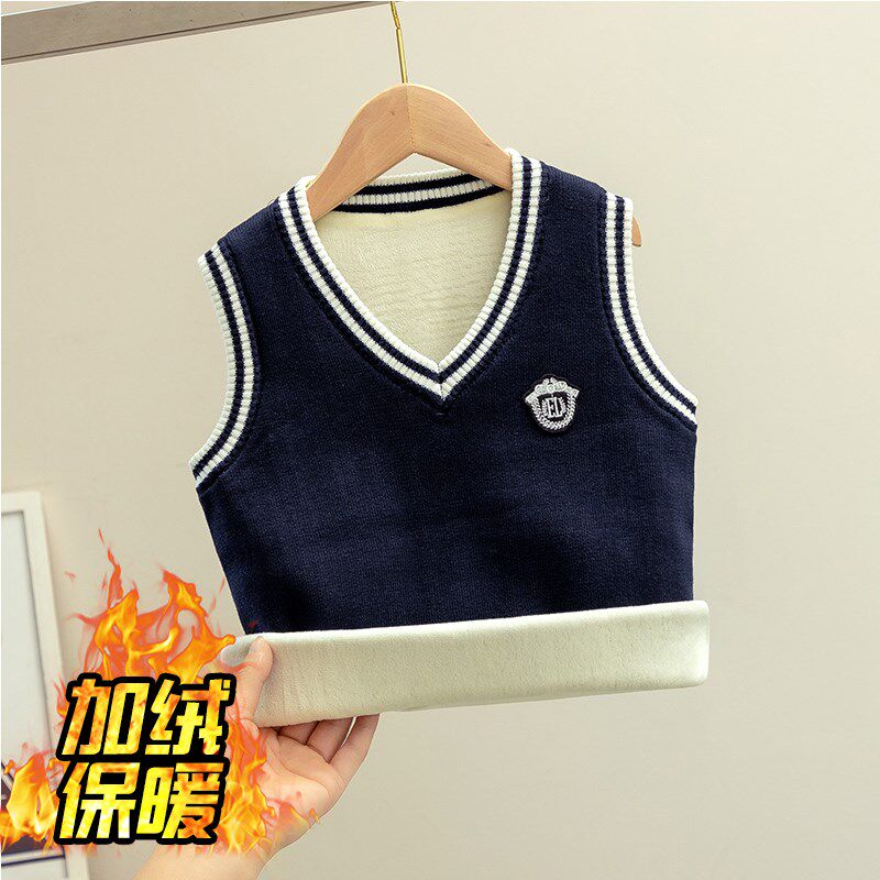 女童马甲儿童秋冬男童毛衣学院风女孩加绒保暖马夹加厚大童背心潮