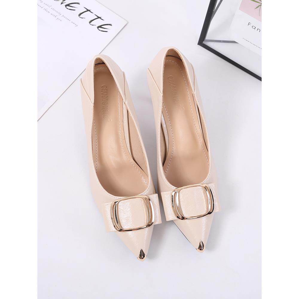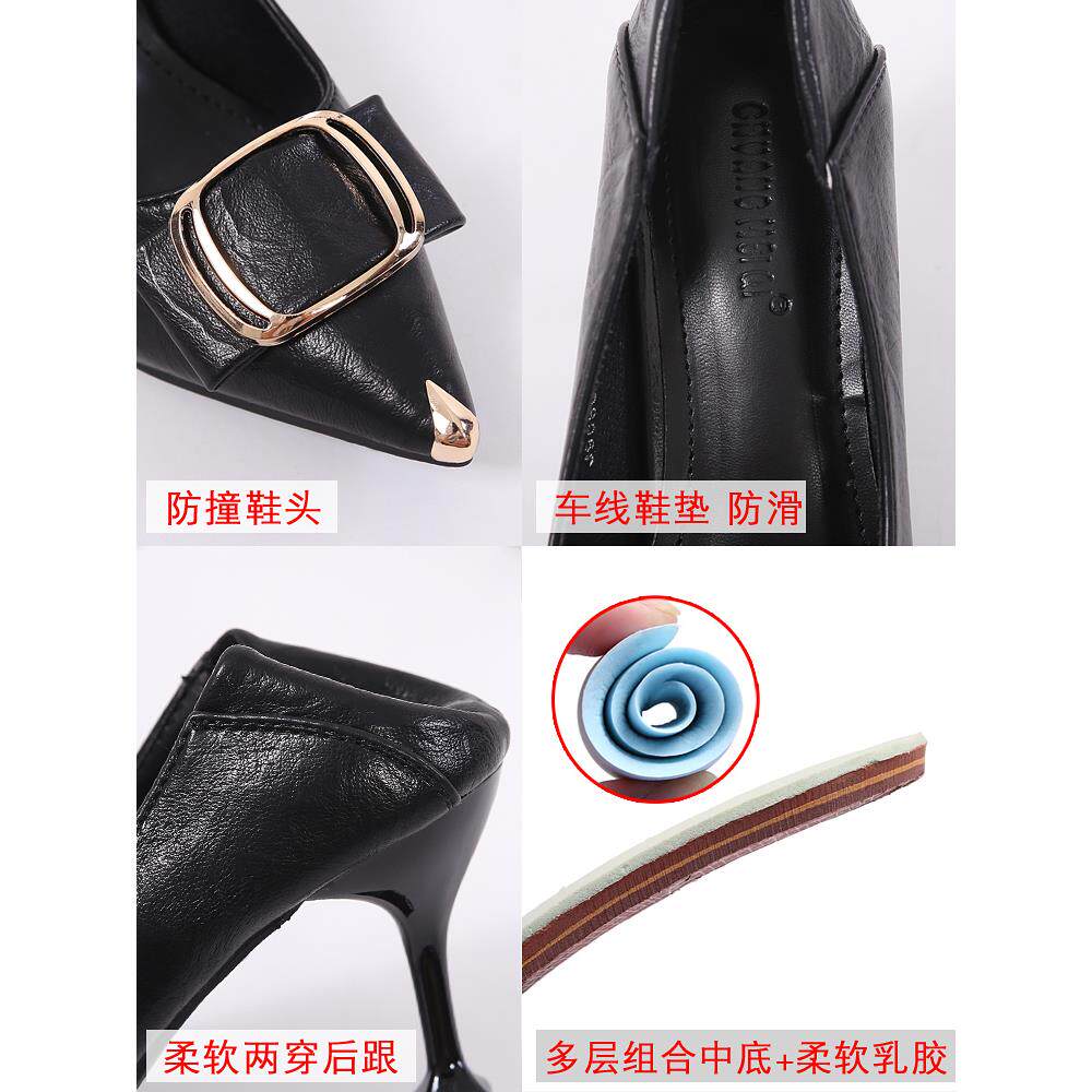 潮牌浅口细跟单鞋女2025年春夏季新款百搭真皮职业尖头工作高跟鞋