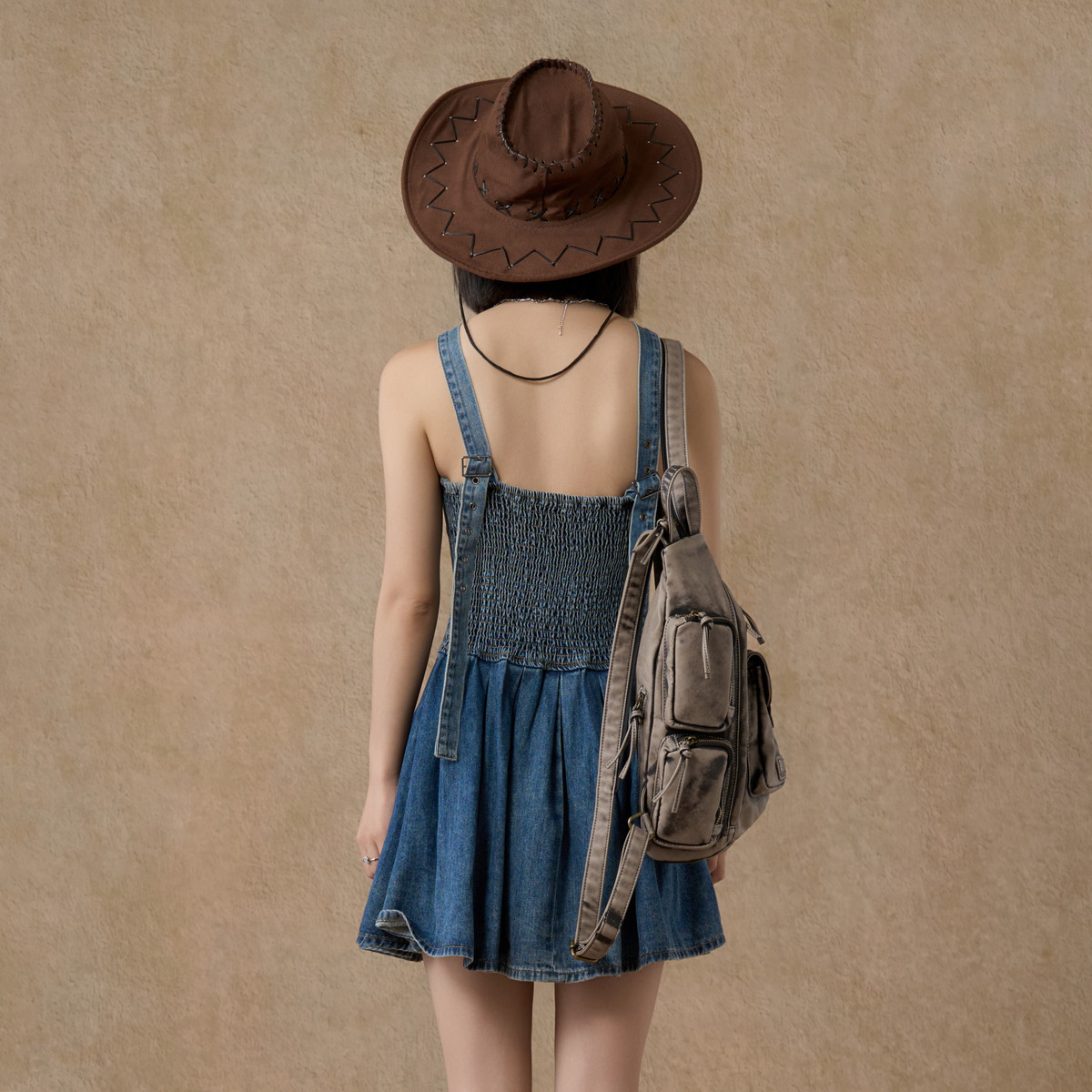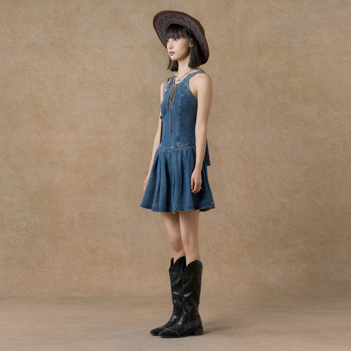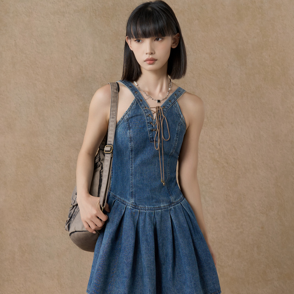 西町村屋系带牛仔吊带裙女夏季新款气质百搭短款连衣裙XAAB10570