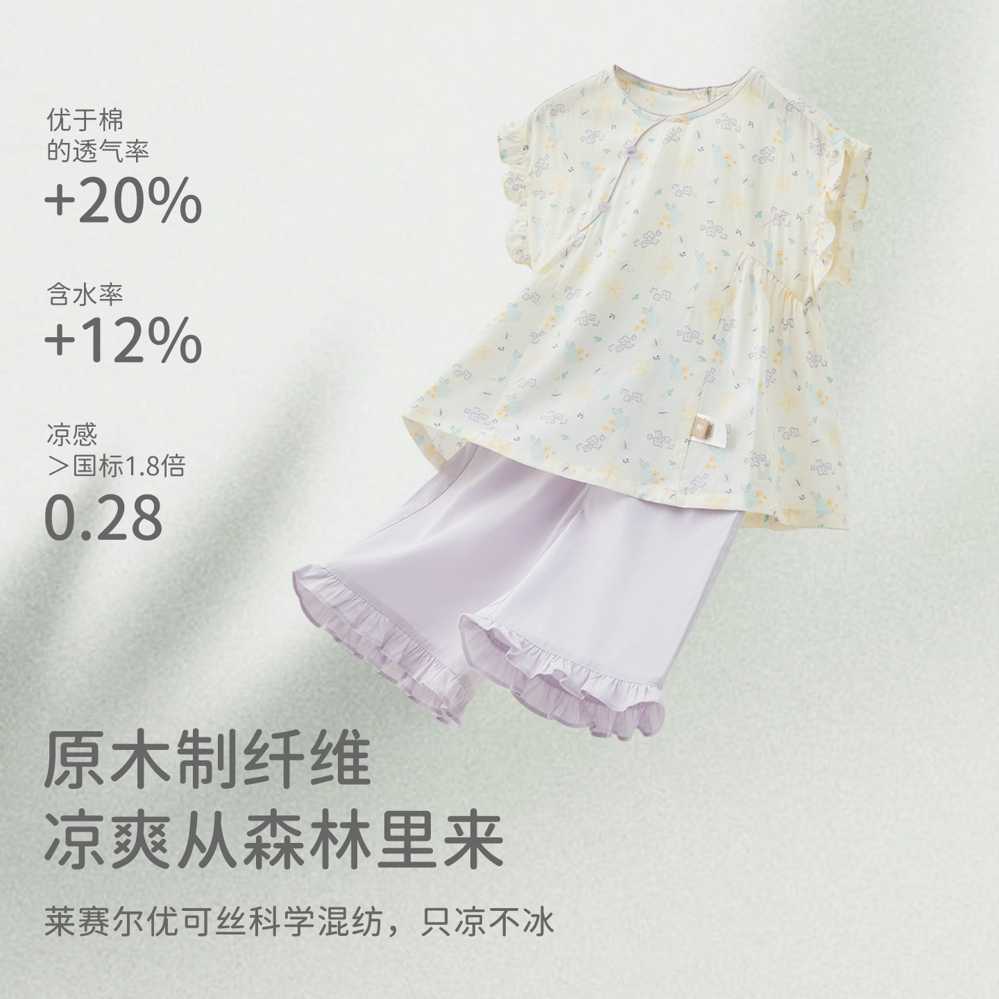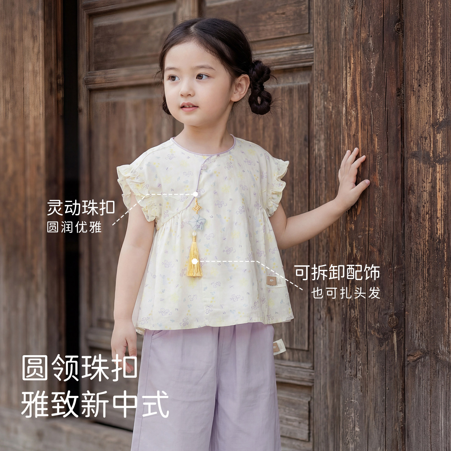 戴维贝拉儿童七分裤套装女童2026新款国风抗菌凉感上衣裤子夏装