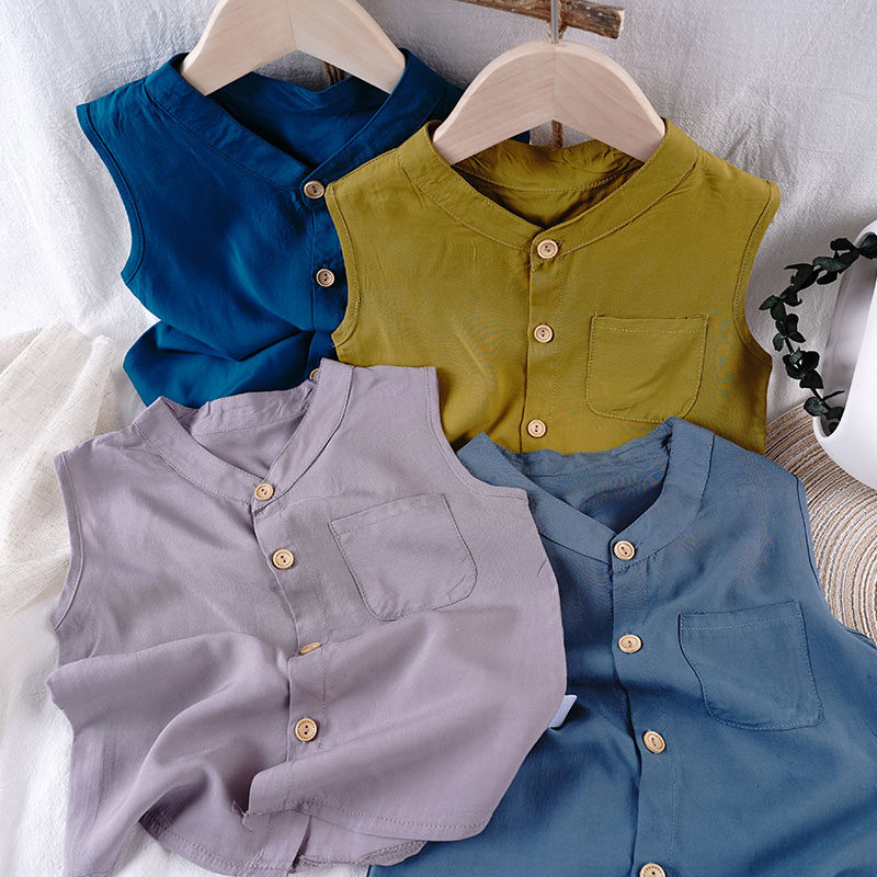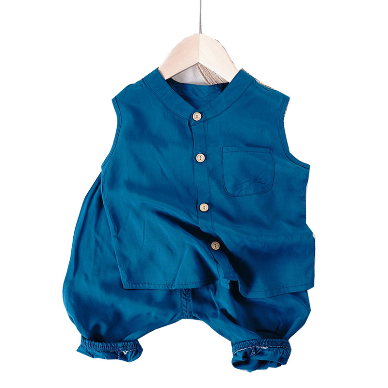 清爽一夏~儿童宝宝绵绸背心裤子两件套 男女童吸汗透气人造棉套装