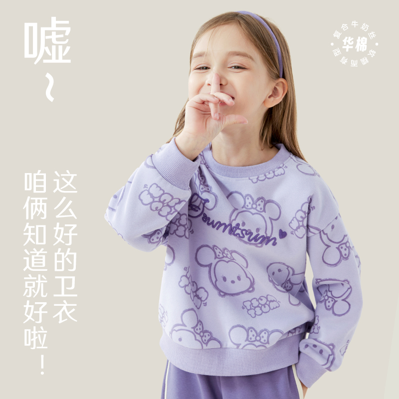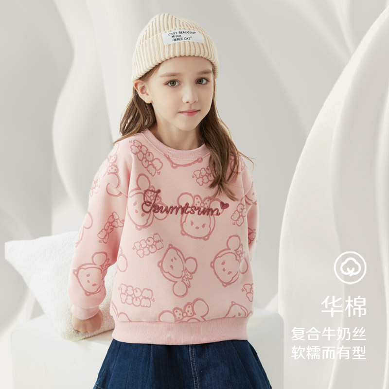 迪士尼女童卫衣春秋款儿童上衣中大童洋气打底衫春装加绒加厚