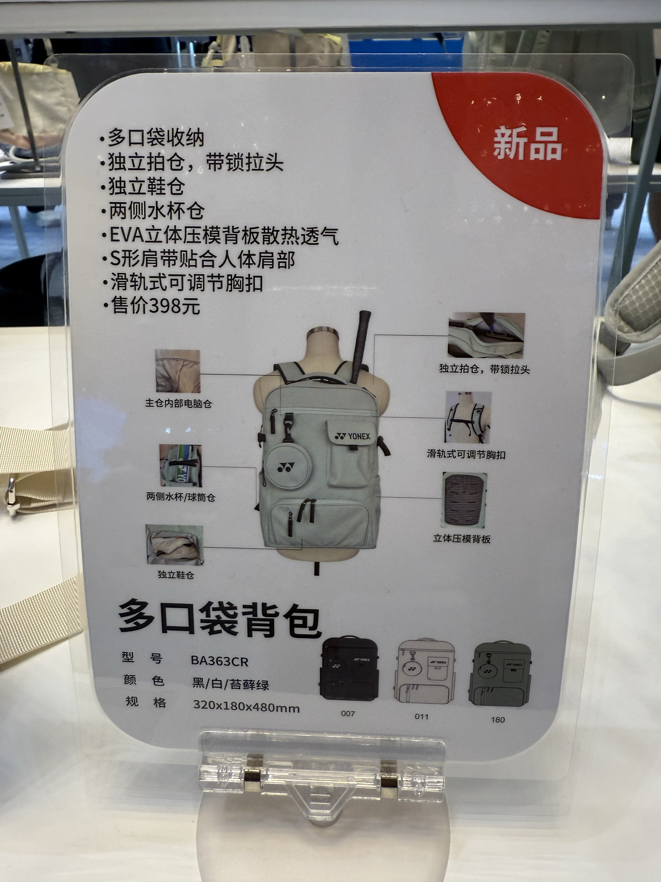 正品尤尼克斯羽毛球包 双肩包多功能收纳袋 运动包休闲包 BA363CR