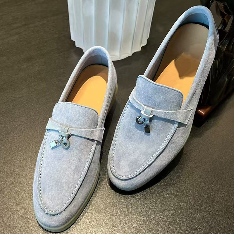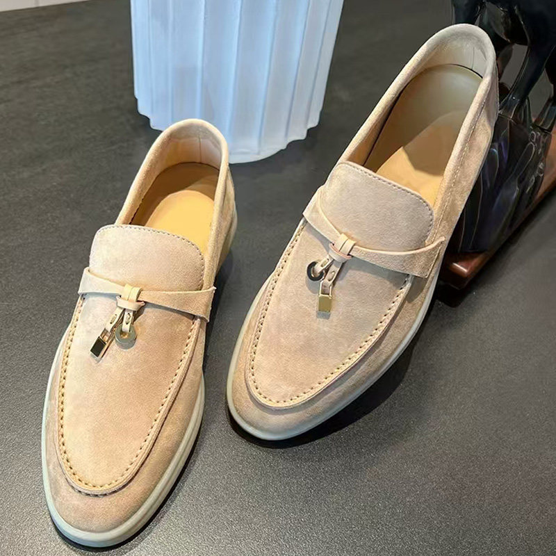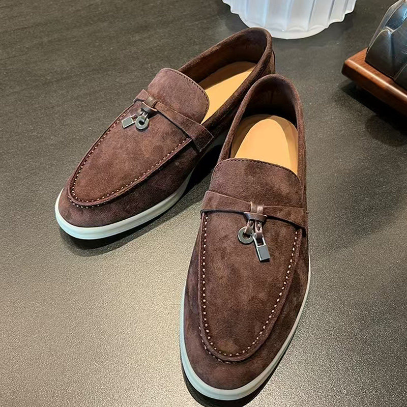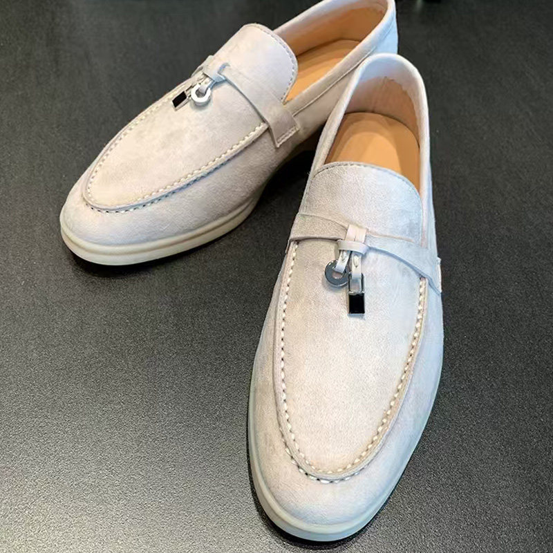 LP高级感真皮豆豆鞋男超软一脚蹬反绒麂皮乐福鞋女老钱风英伦单鞋
