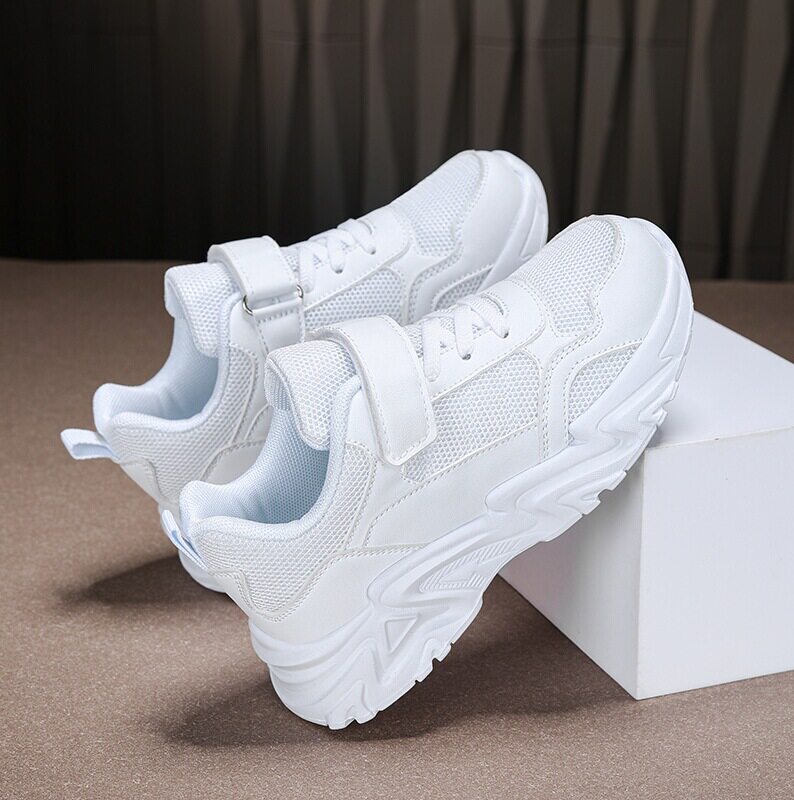ABC kings儿童运动鞋透气网面中大童小白鞋轻便软底男女童黑色鞋