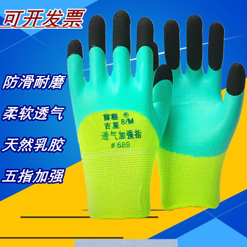 左手右手前程吉星989透气王加强指乳胶发泡手套浸胶防滑耐磨689劳