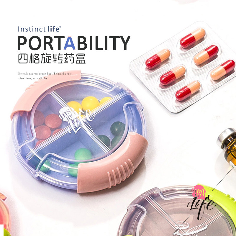 便携式迷你四格小药盒儿童老人药品圆形旋转药片分装塑料每日药合