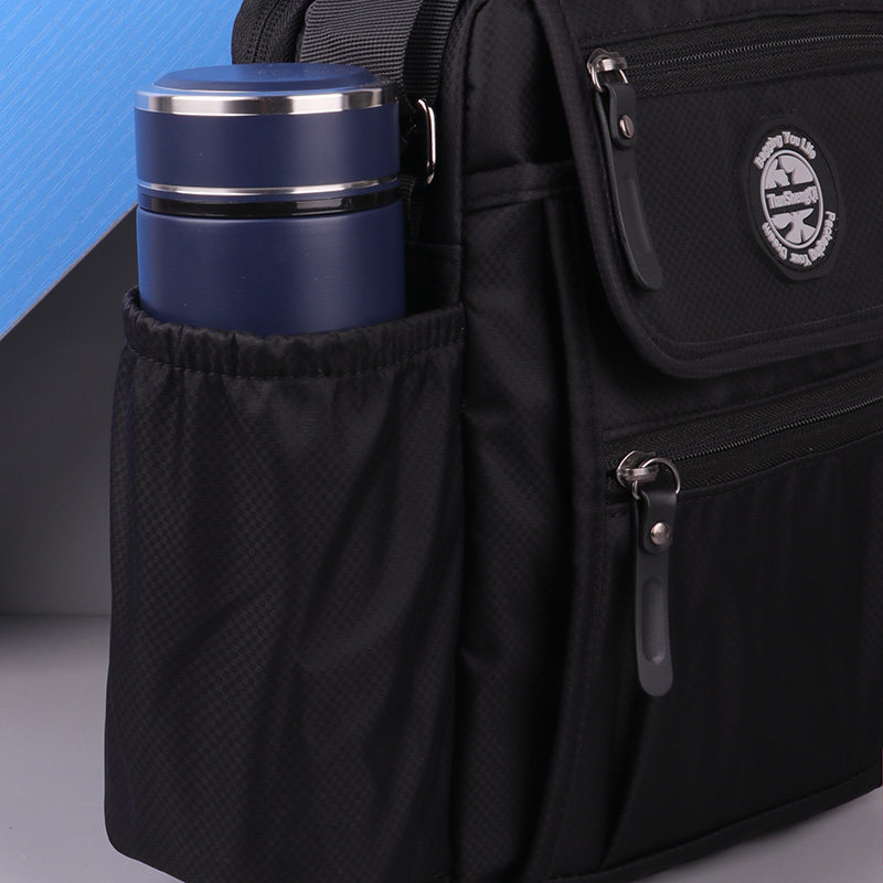 男士斜挎包2025新款手提单肩包大容量水杯架旅行包帆布男士便携包