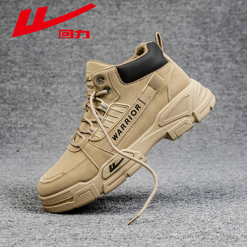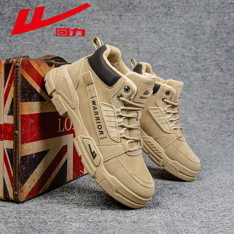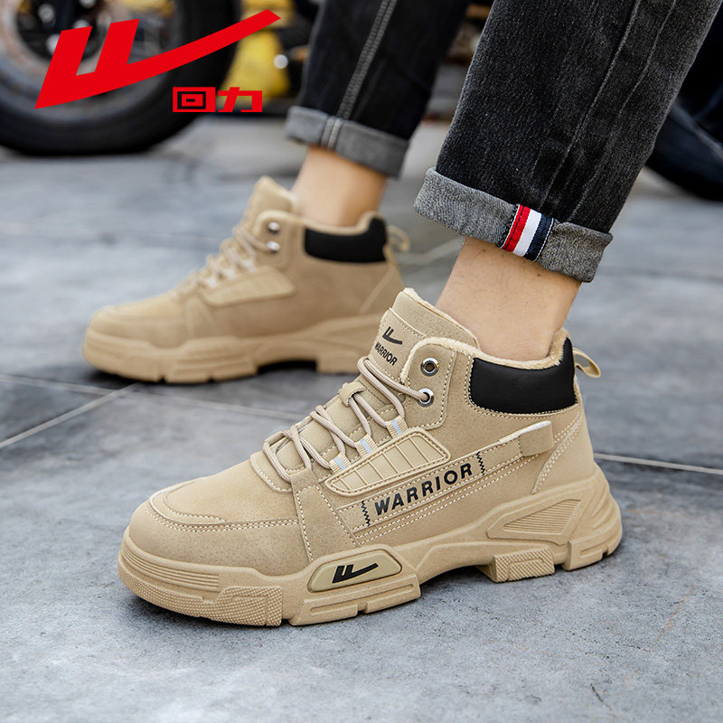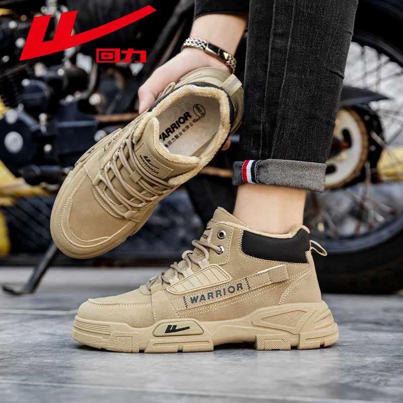 回力男鞋新款马丁靴秋冬高帮户外加绒棉鞋工装登山鞋子男款雪地靴