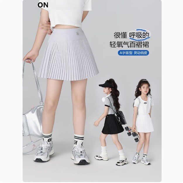 女童半身裙运动速干裙子夏季羽毛球网球裙儿童百褶裙夏装冰丝短裙