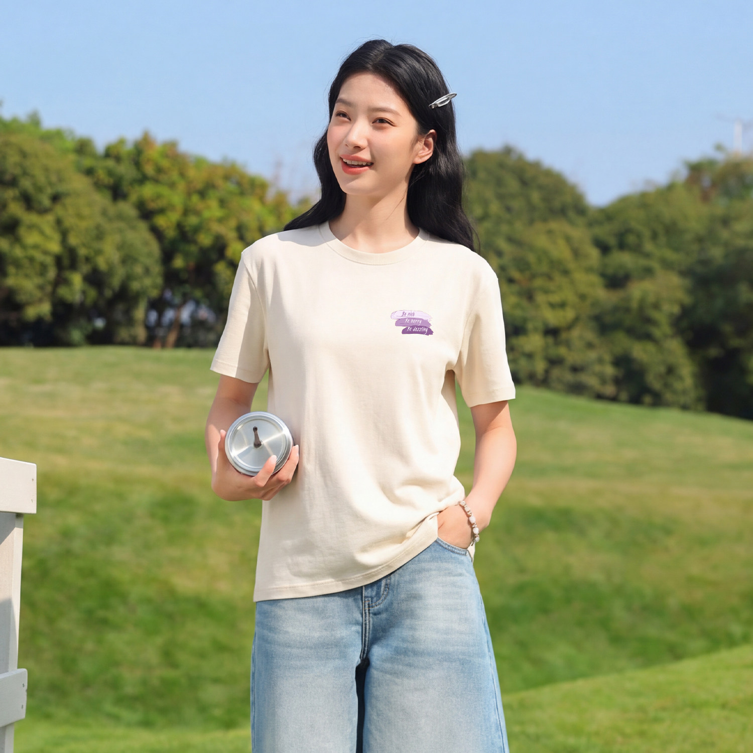 班尼路纯棉正肩短袖T恤女款2026春夏新款小个子宽松休闲内搭上衣N