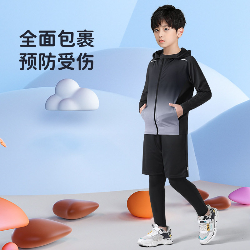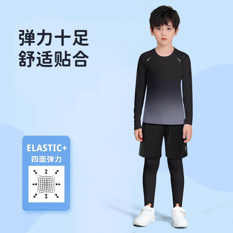 儿童运动套装秋季速干篮球足球训练服男童跑步青少年冬紧身衣体能