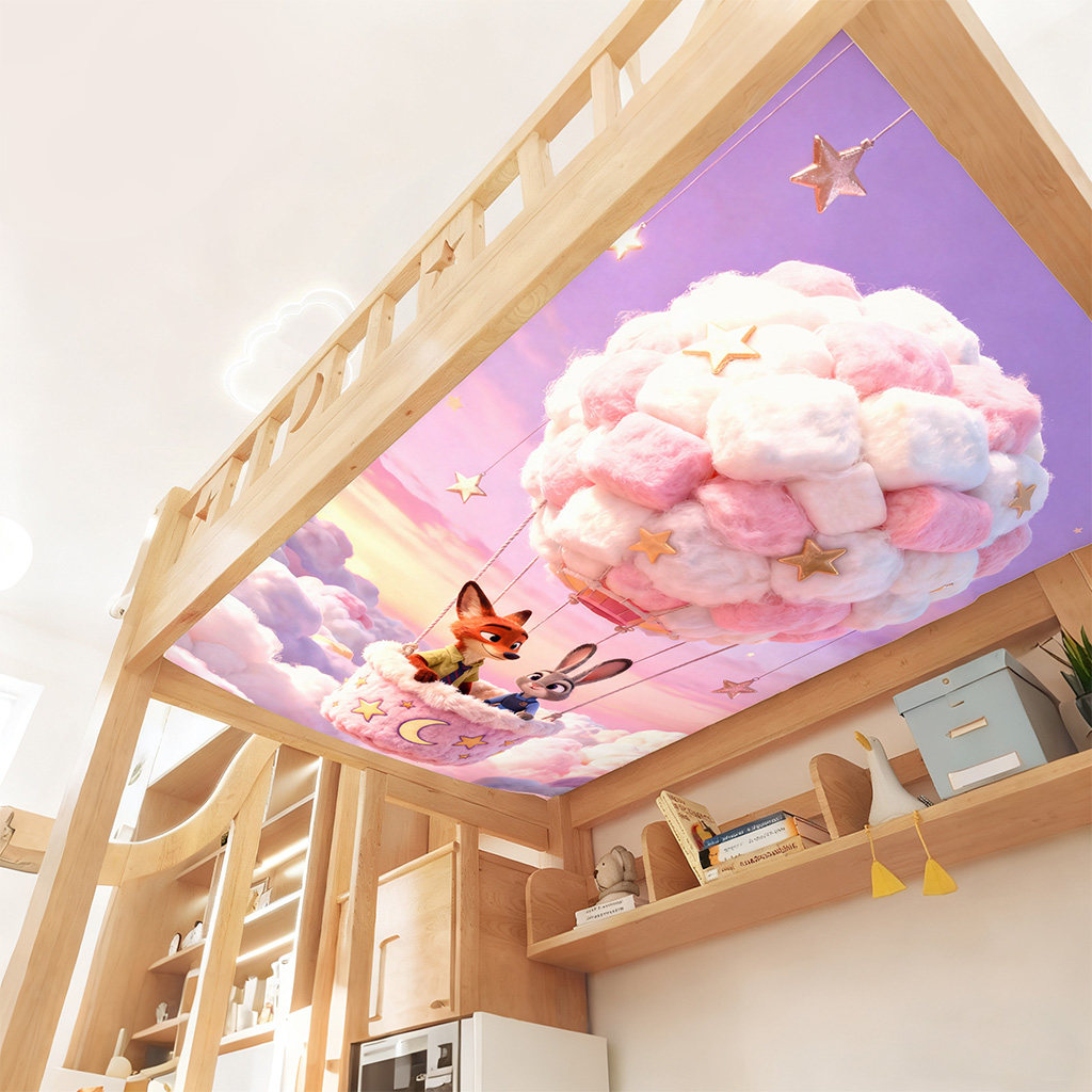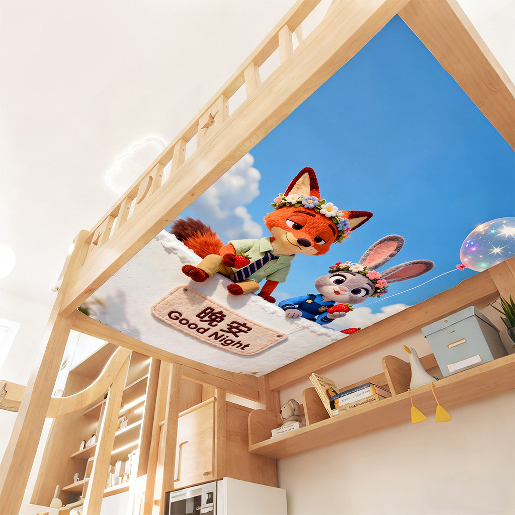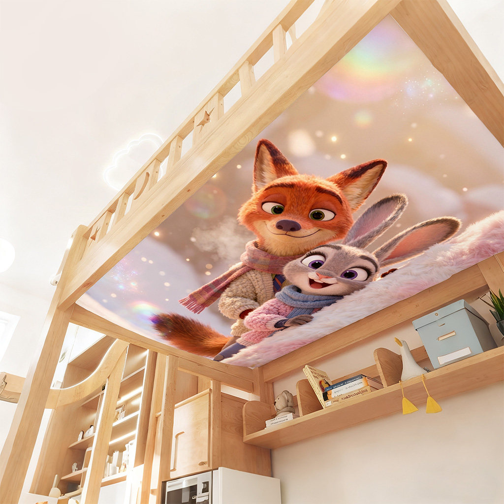 可爱卡通狐狸兔子图案上下铺防尘顶绒布遮挡帘装饰帘防尘顶布定制