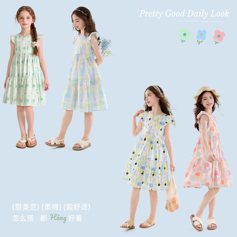 迪士尼女童连衣裙夏季纯棉儿童裙子2026新款中大童洋气飞袖公主裙