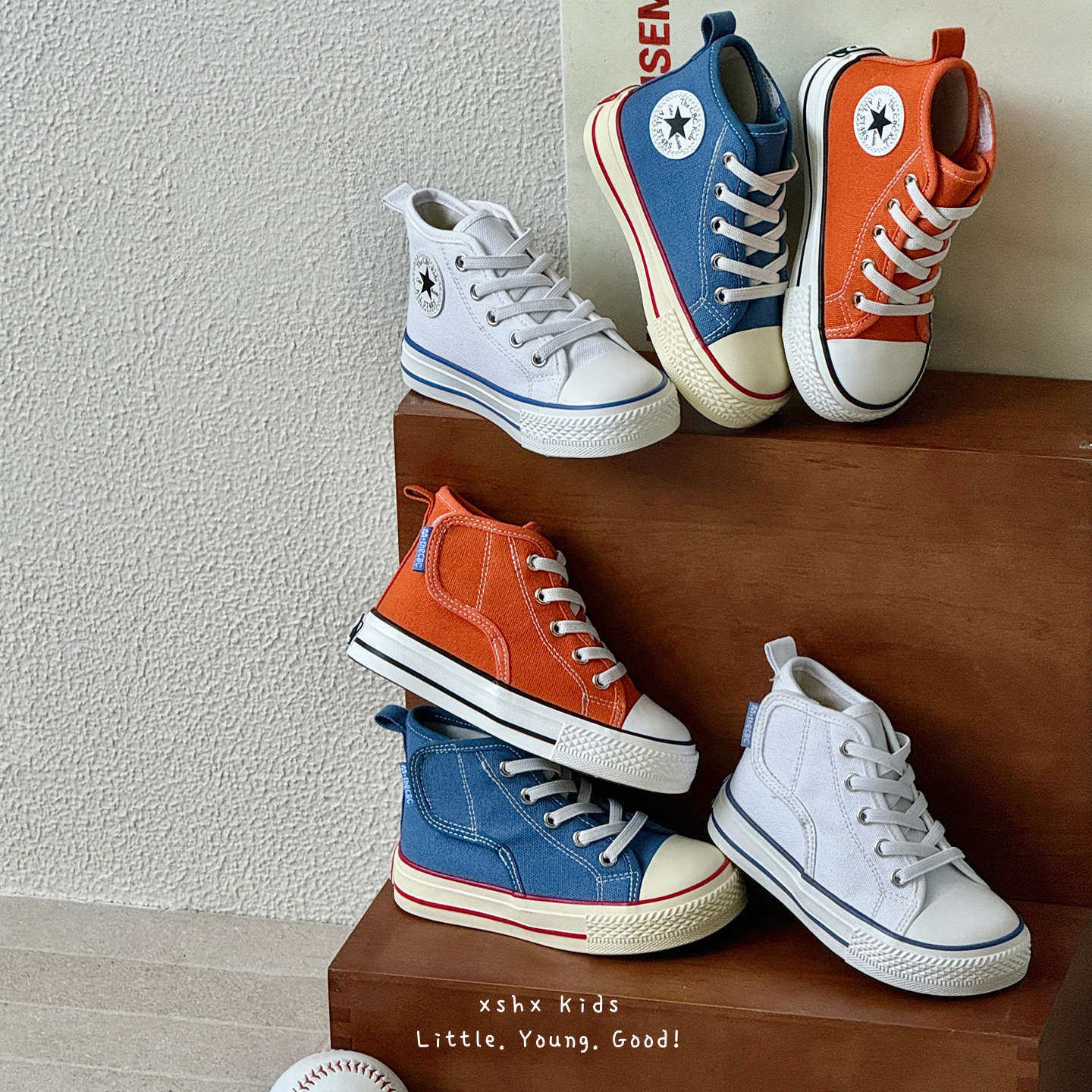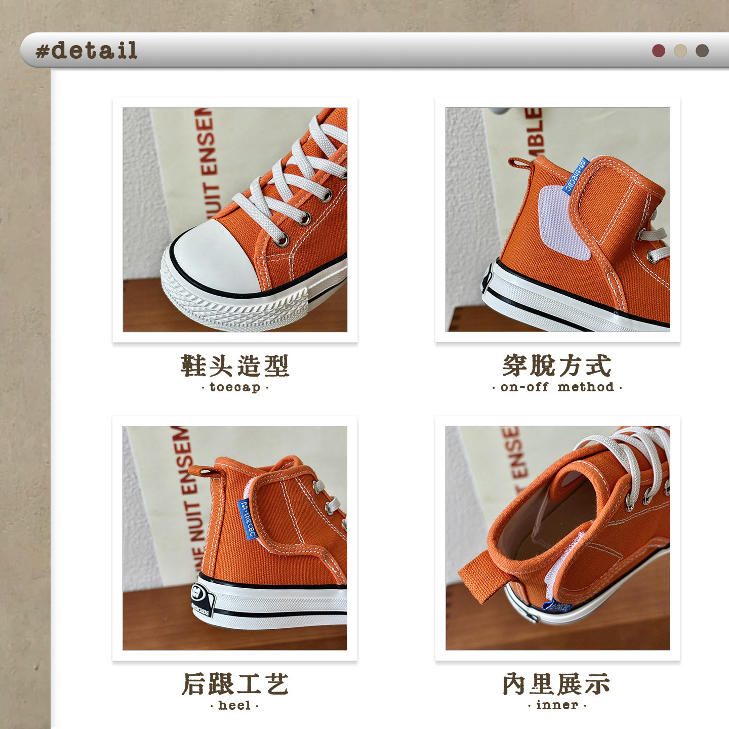 美式枫达男女童商场同款帆布板鞋魔术贴穿脱滑板专业防滑厚底高帮