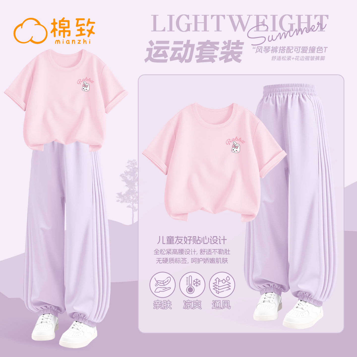 棉致女童夏套装2026新款薄款短袖女孩夏装运动服夏季儿童裤子女