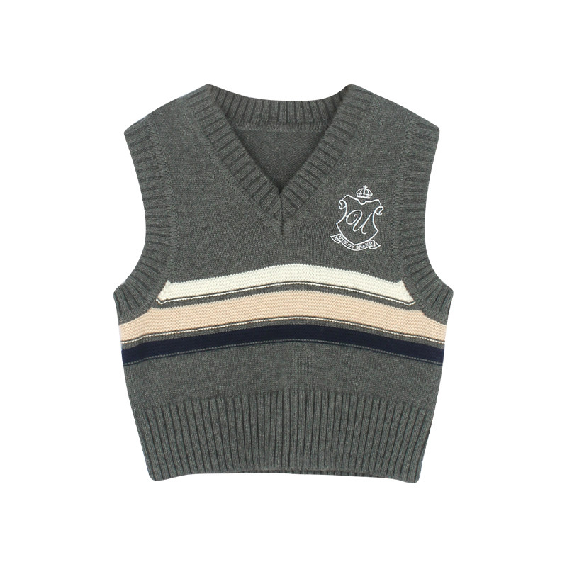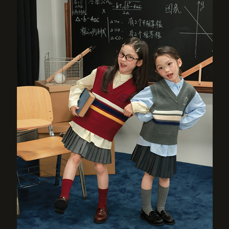 大耳象女童英伦风v领毛衣马甲秋季款宝儿学院针织上衣