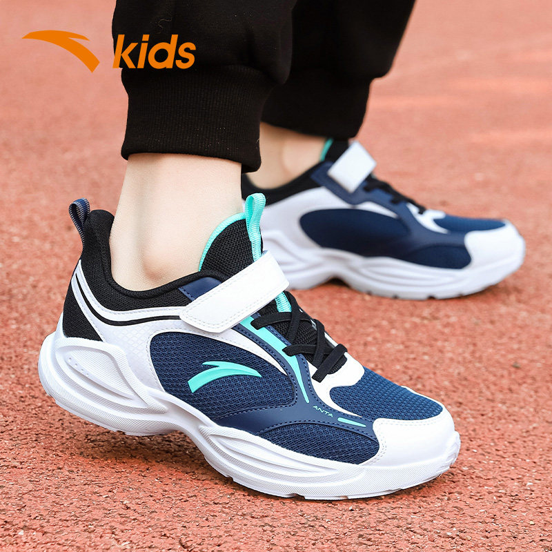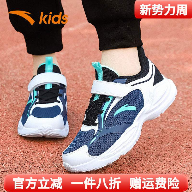 安踏童鞋儿童运动鞋网面透气男童跑步鞋春秋中大童网鞋魔术贴鞋子