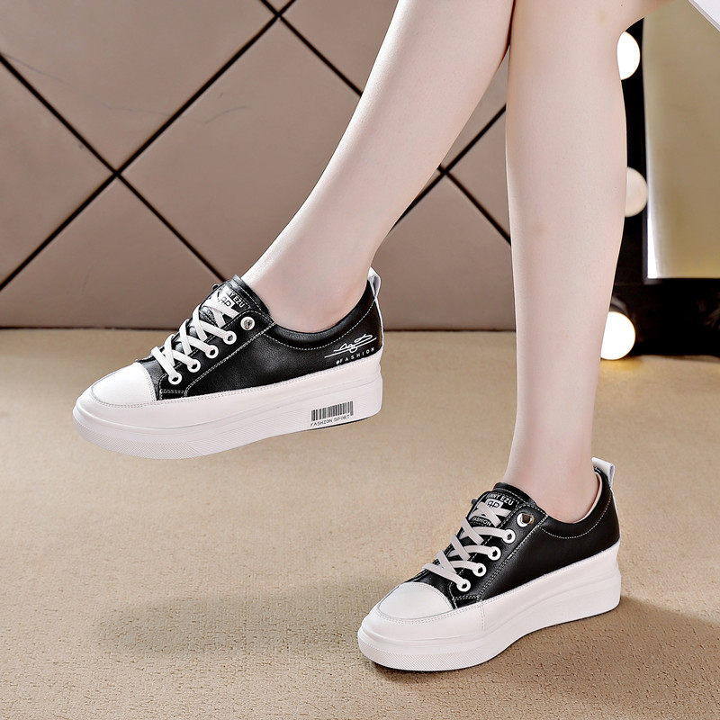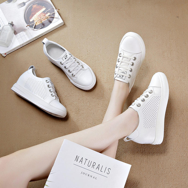 真皮内增高小白鞋女2025春夏季新款韩版百搭厚底坡跟休闲旅游鞋女